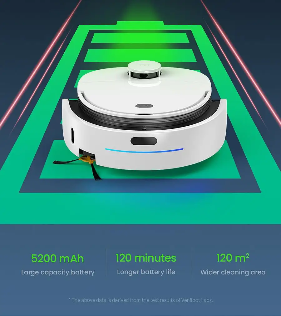 The N1 Max uses a 5200 mAh large-capacity battery with a battery life of more than 120 minutes on a single charge,and can easily clean houses of 120 square meters.