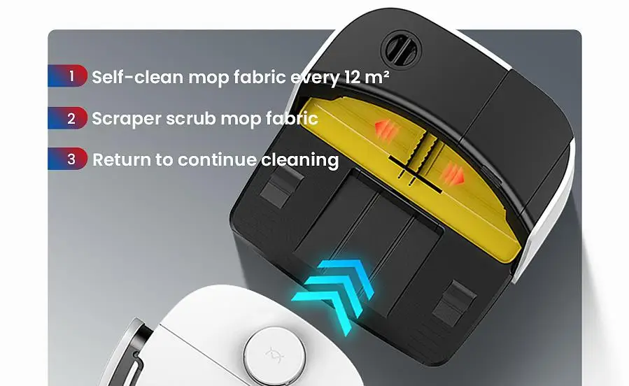 Every time when N1 Max sweeps a certain area,it will return to the base to clean the mop,and then returna to the breakkpoint to continue sweeping.