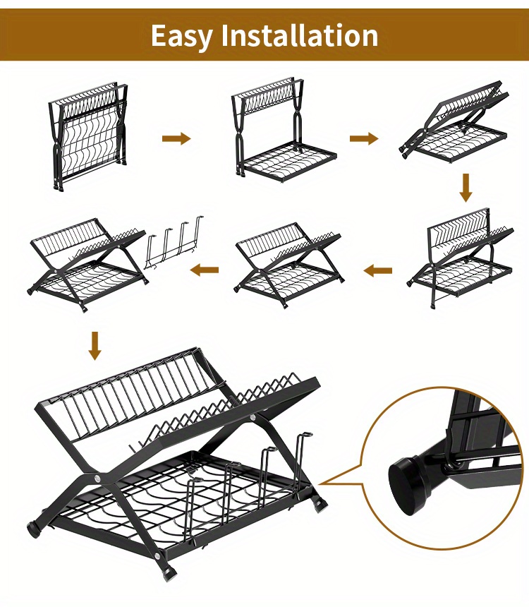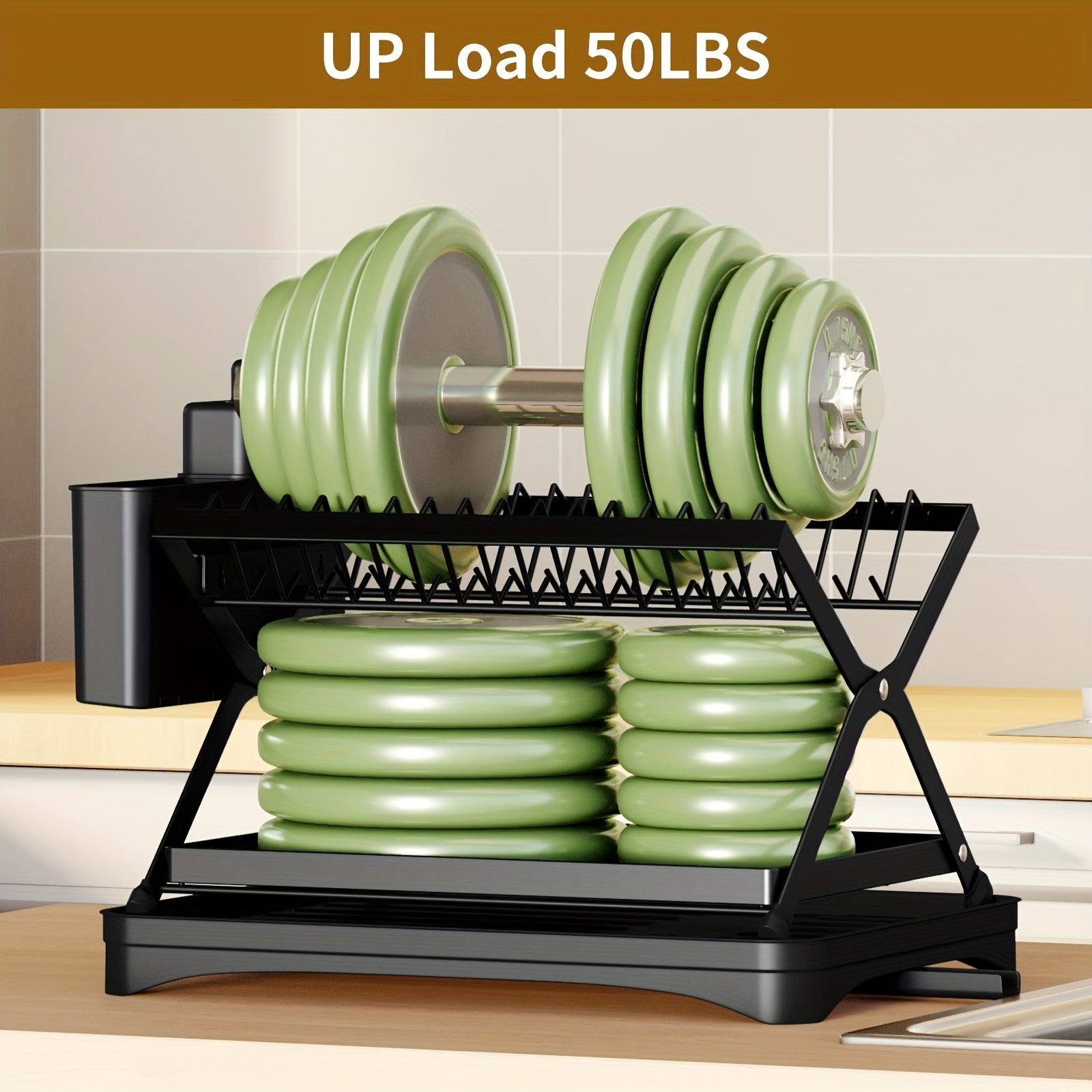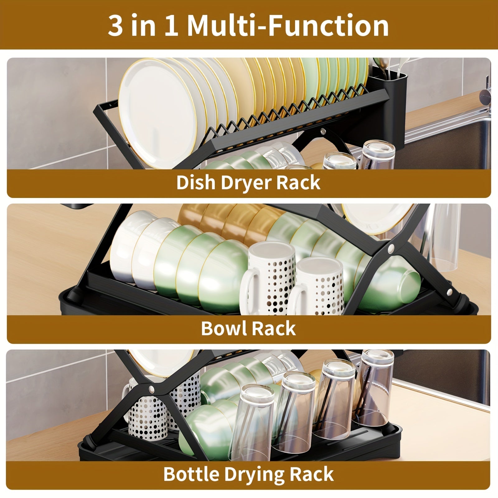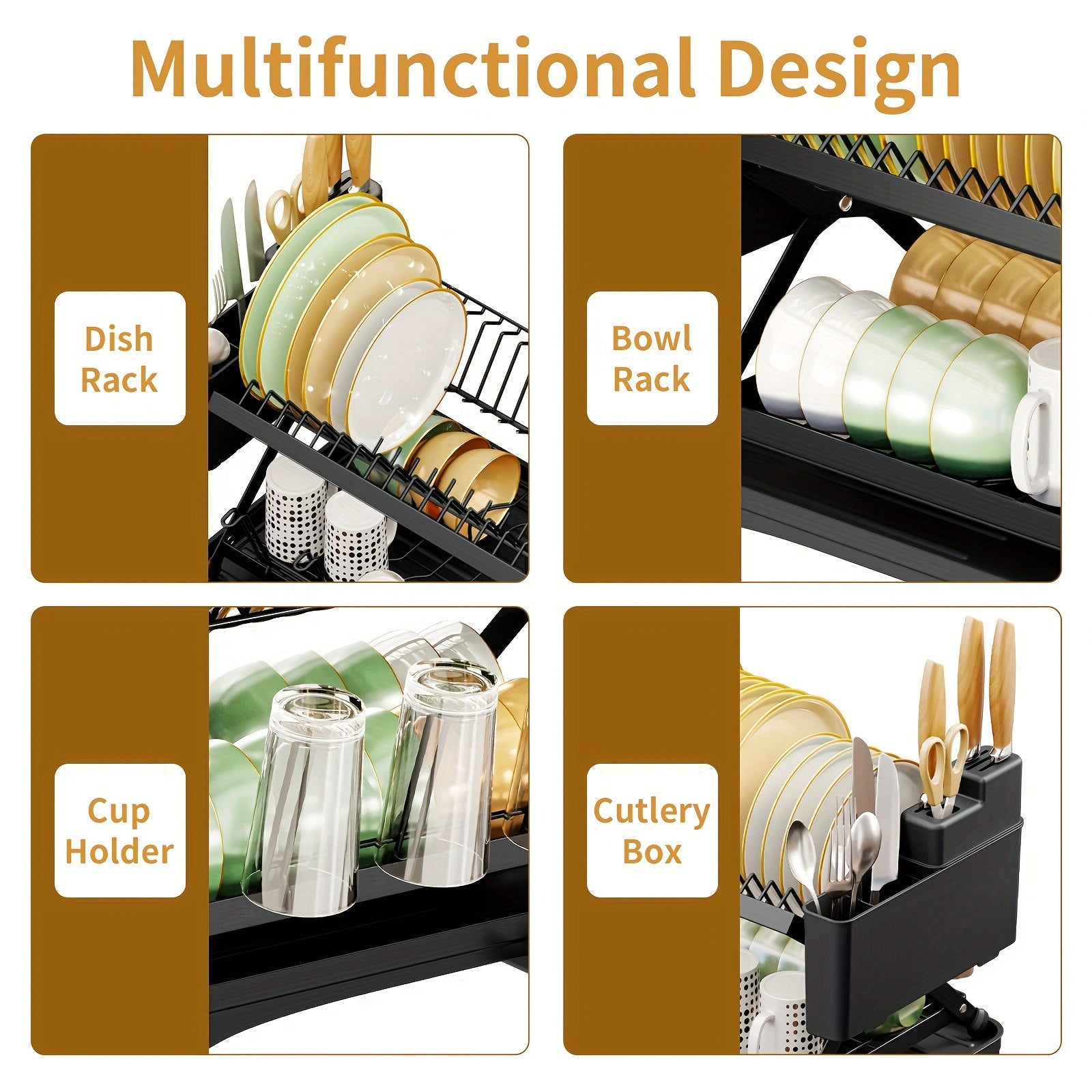 1 Set Dish Drying Rack Collapsible, 2 Tier Dish Rack Foldable With Cup Holder And Cutlery Box, Dish Rackst With Swivel Spout For Kitchen Counter, Dish Drainer With Drainboard, Kitchen Accessories