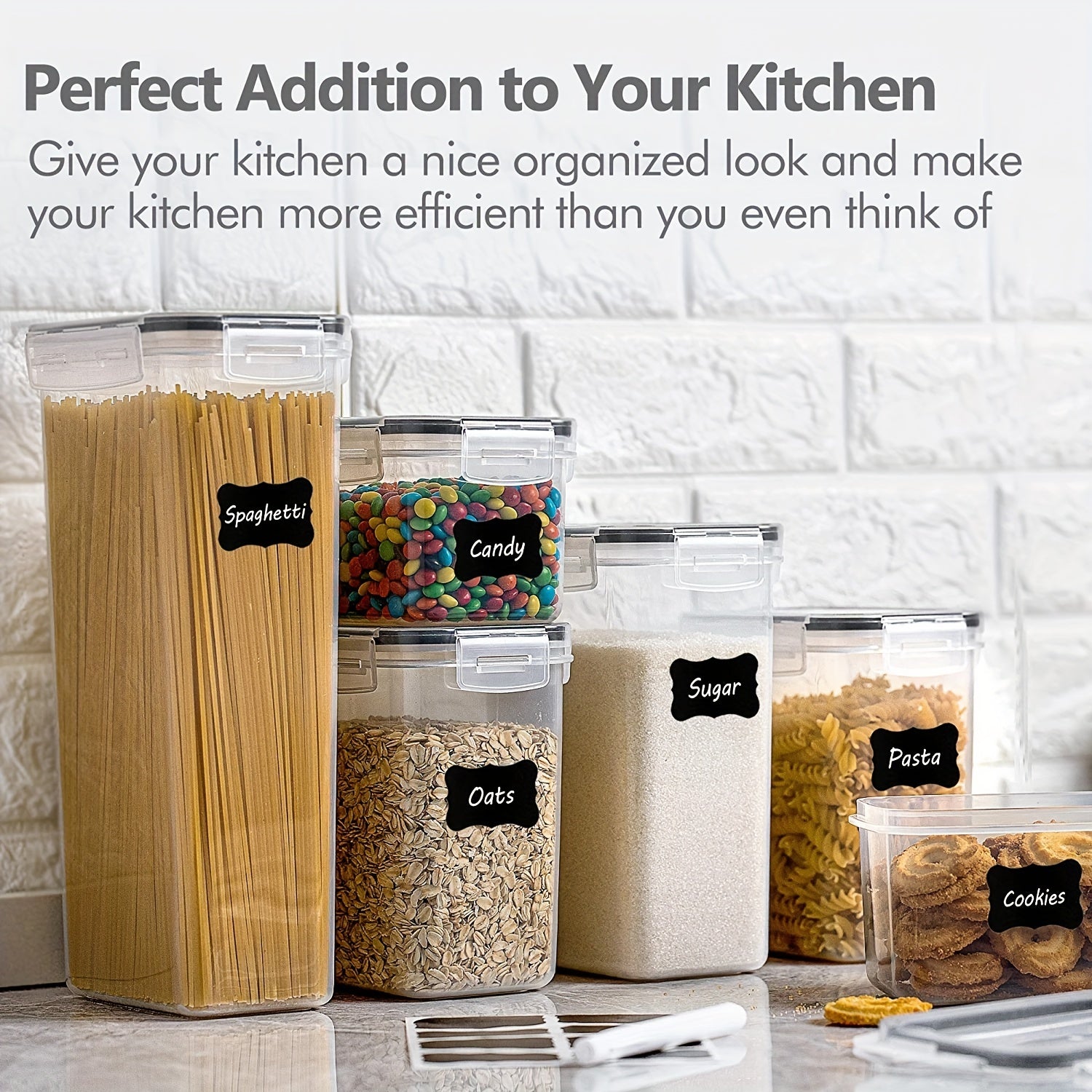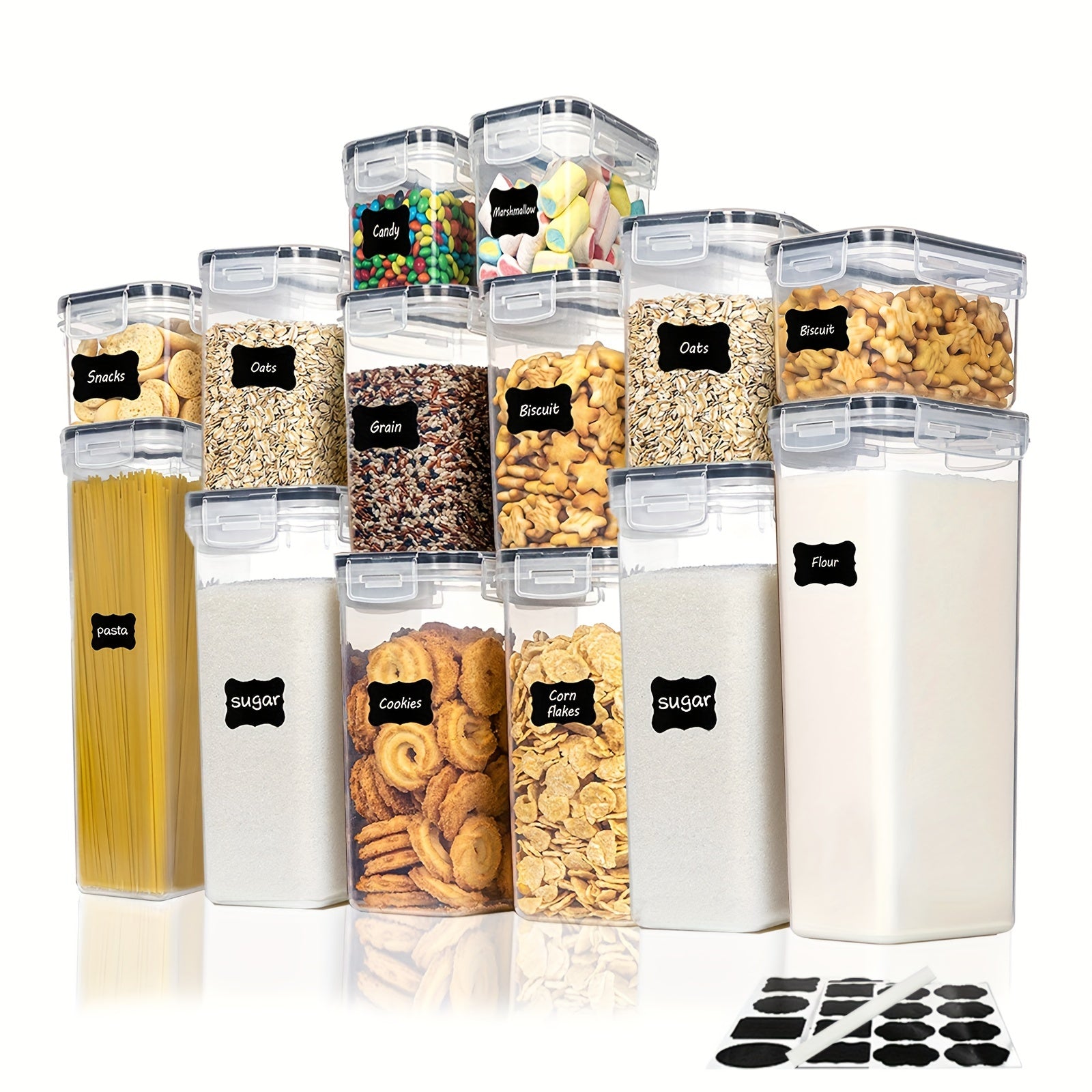 14pcs Airtight Food Storage Containers With Lid And Label, Plastic BPA-Free Kitchen And Pantry Organization Storage Containers For Spaghetti, Pasta, Sugar, Flour And Baking Supplies, Dishwasher Safe, Plastic Food Tank, Home Kitchen Supplies