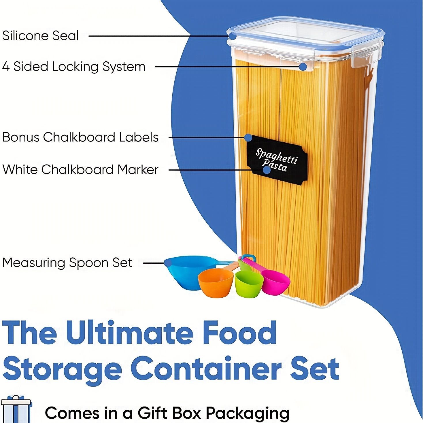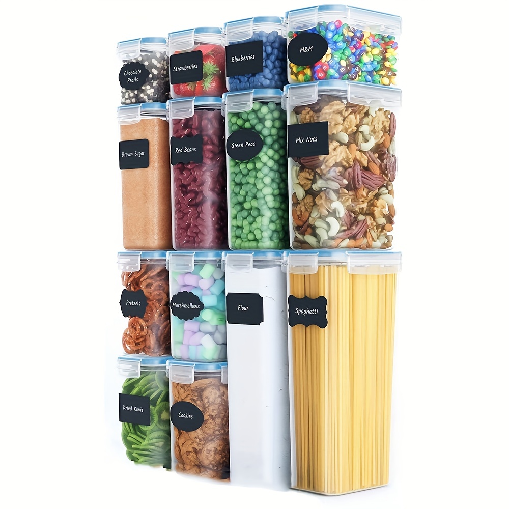 14pcs Premium Pasta Containers With Lids And Marker, For Kitchen & Pantry Organization, BPA Free Variety Plastic Containers For Dry Food Storage & Other Pantry Needs, Kitchen Supplies