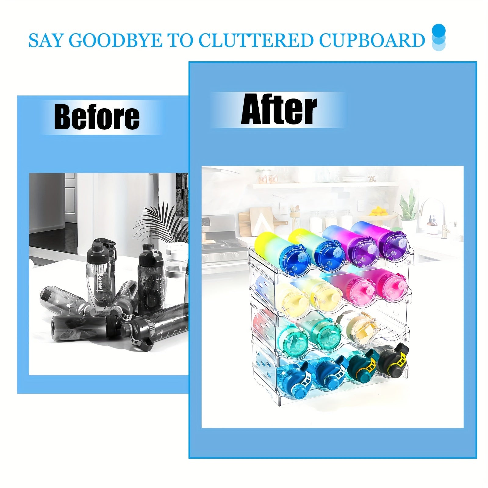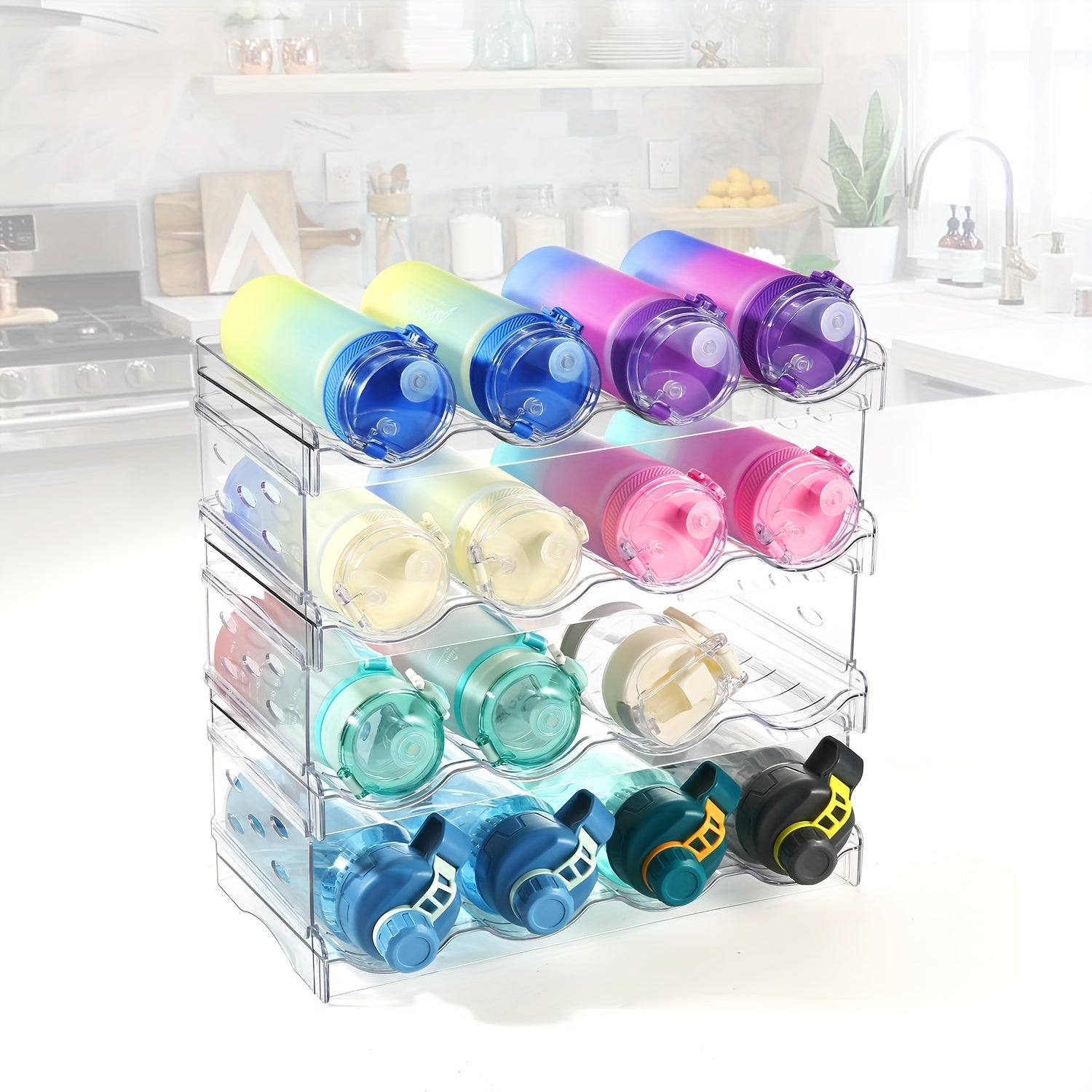 1pc 4-tier Plastic Water Bottle Organizer Rack, Stackable Storage Holder Rack, Water, Wine, And Drink Organizer, Kitchen Accessories