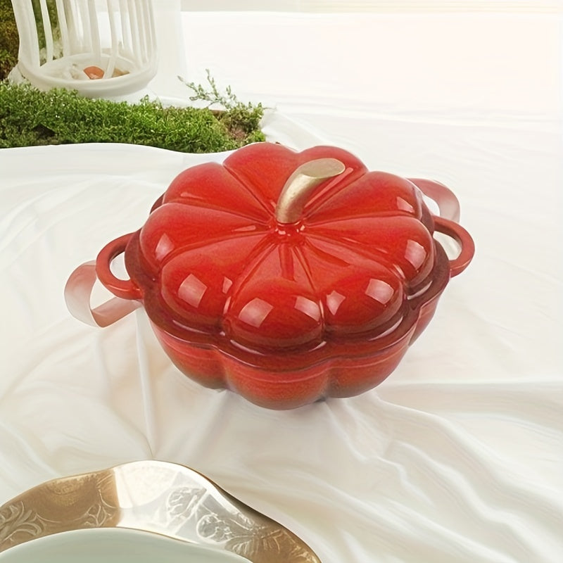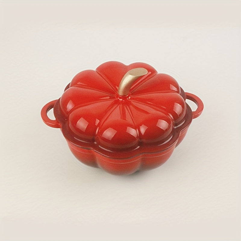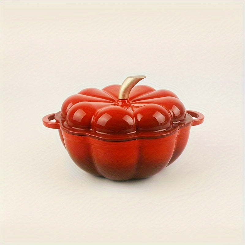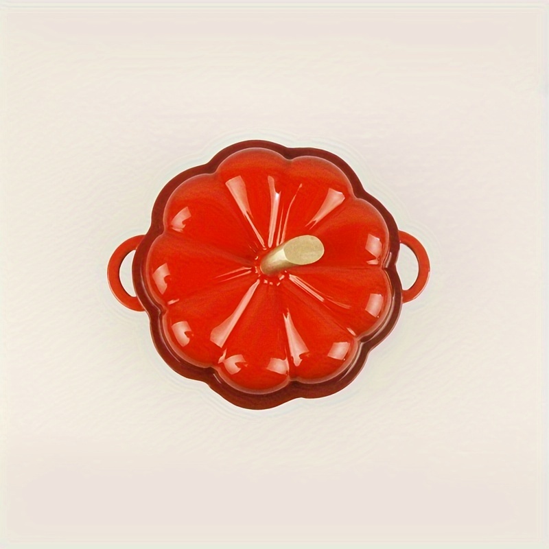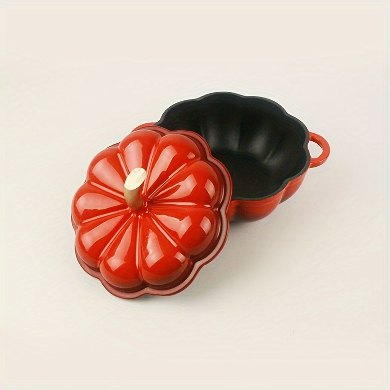 1pc Pumpkin Enamel Pot, 8 In Cast Iron Stock Pot, Dutch Oven Casserole Thick Saucepan With Lid, Suitable For Gas Stove/Induction Cooker And More, Cookware, Kitchenware, Kitchen Supplies, Red