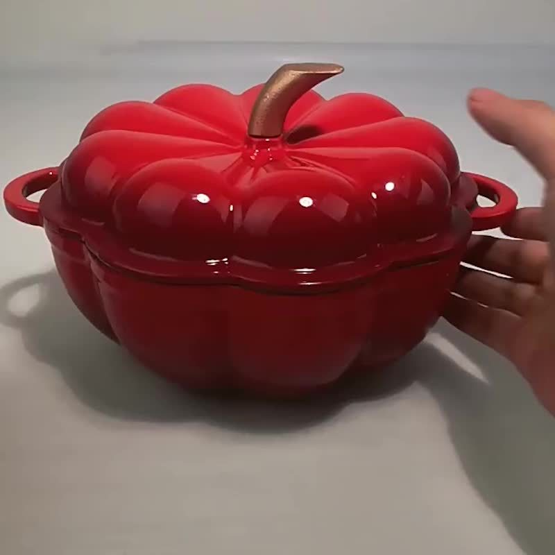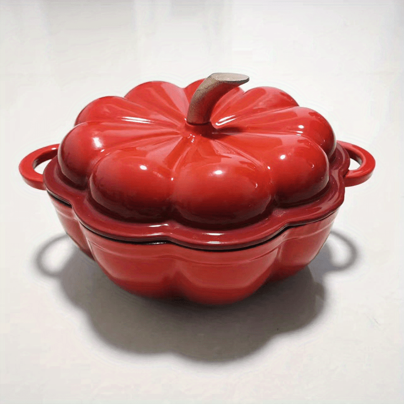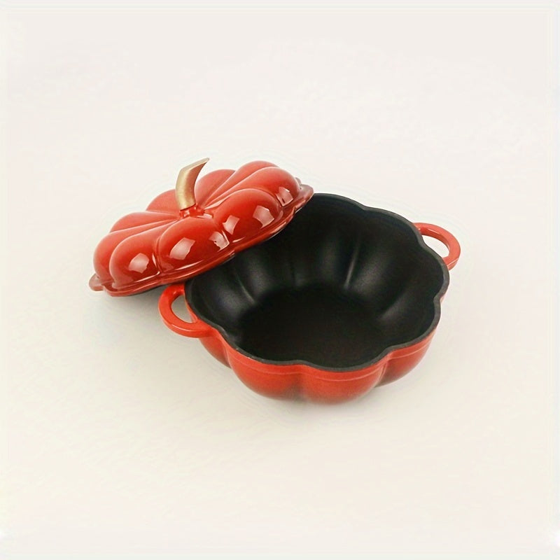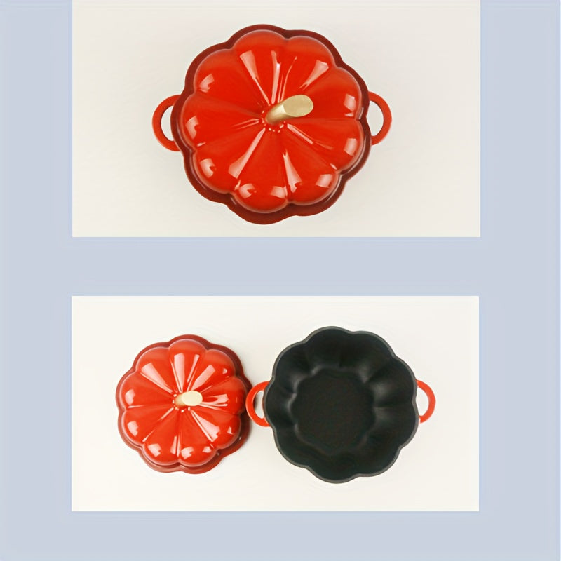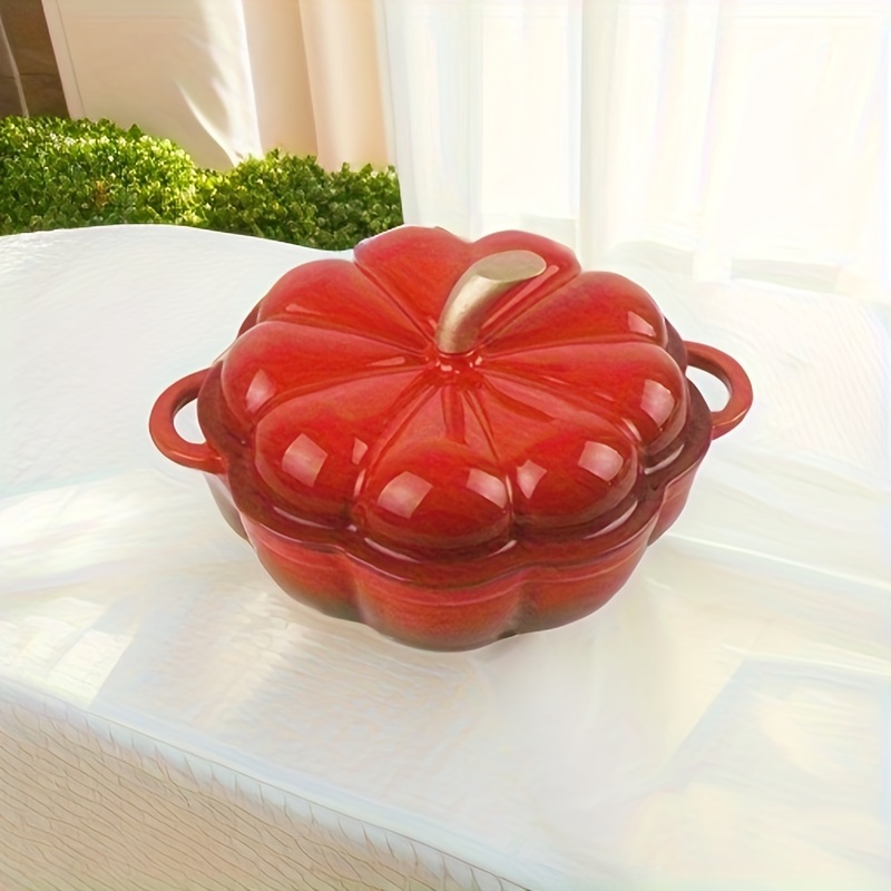 1pc Pumpkin Enamel Pot, 8 In Cast Iron Stock Pot, Dutch Oven Casserole Thick Saucepan With Lid, Suitable For Gas Stove/Induction Cooker And More, Cookware, Kitchenware, Kitchen Supplies, Red