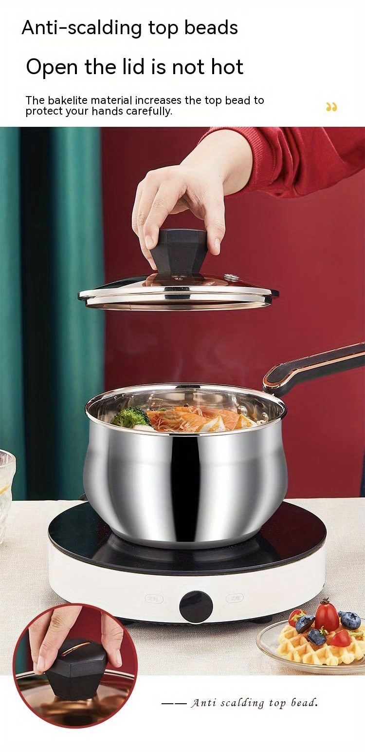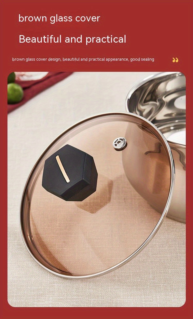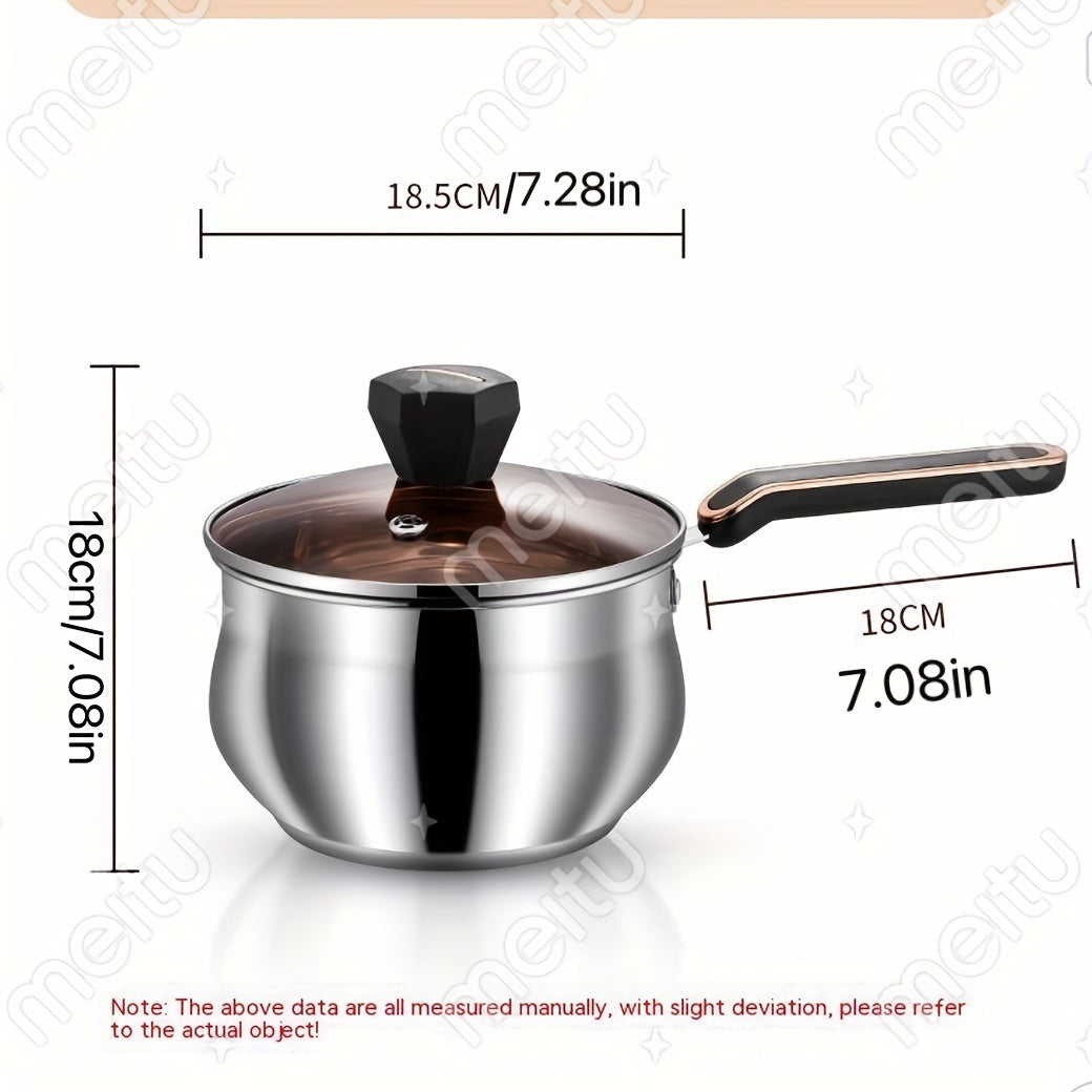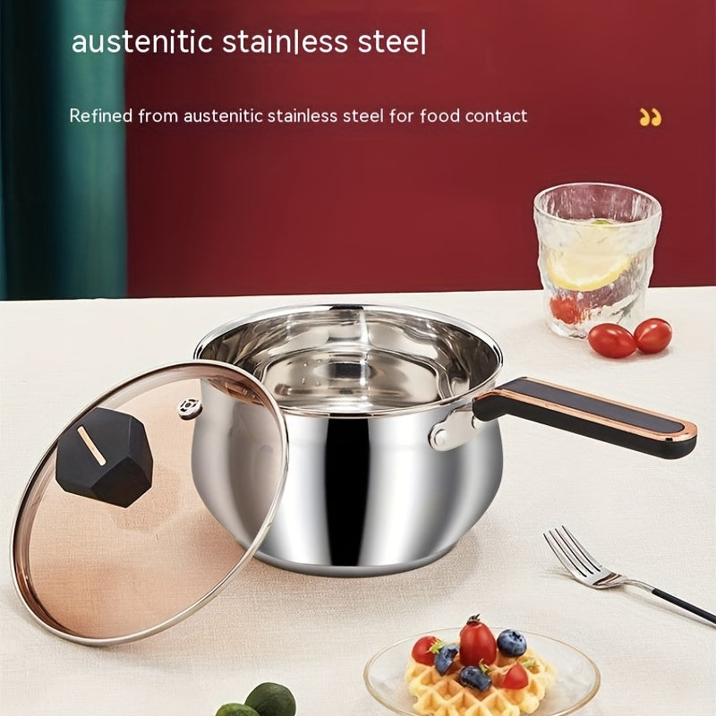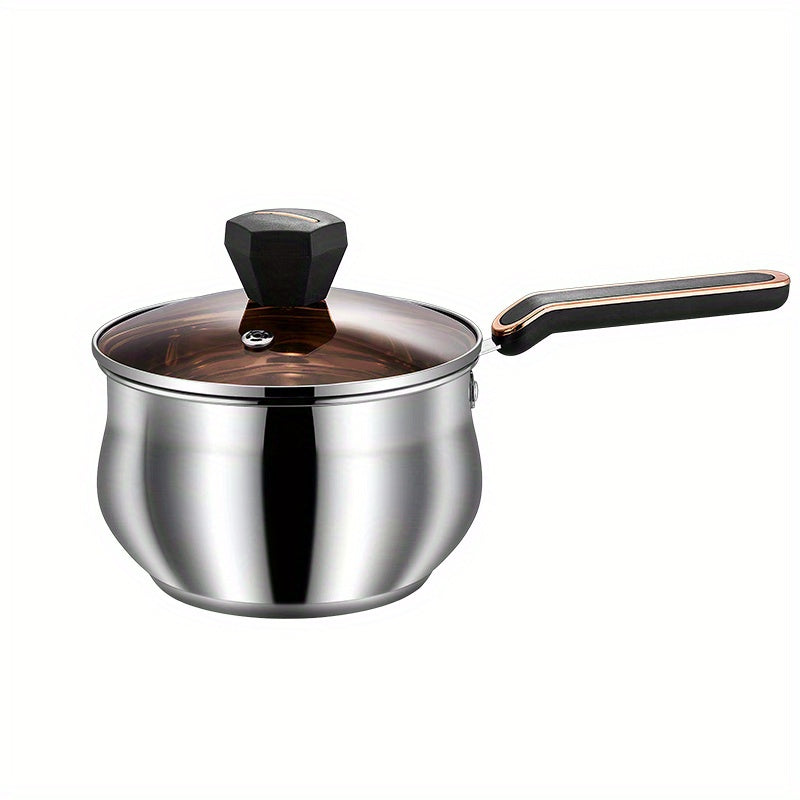 1pc Saucepan, Stainless Steel Sauce Pot, With Clear Glass Cover, Ergonomic Handle, Braisers, Multipurpose Cooking Pot With Lid, Cookware, Kitchenware, Kitchen Supplies, Home Kitchen Items