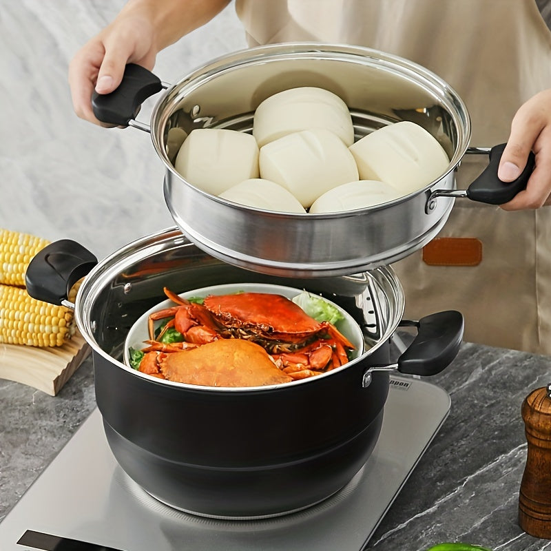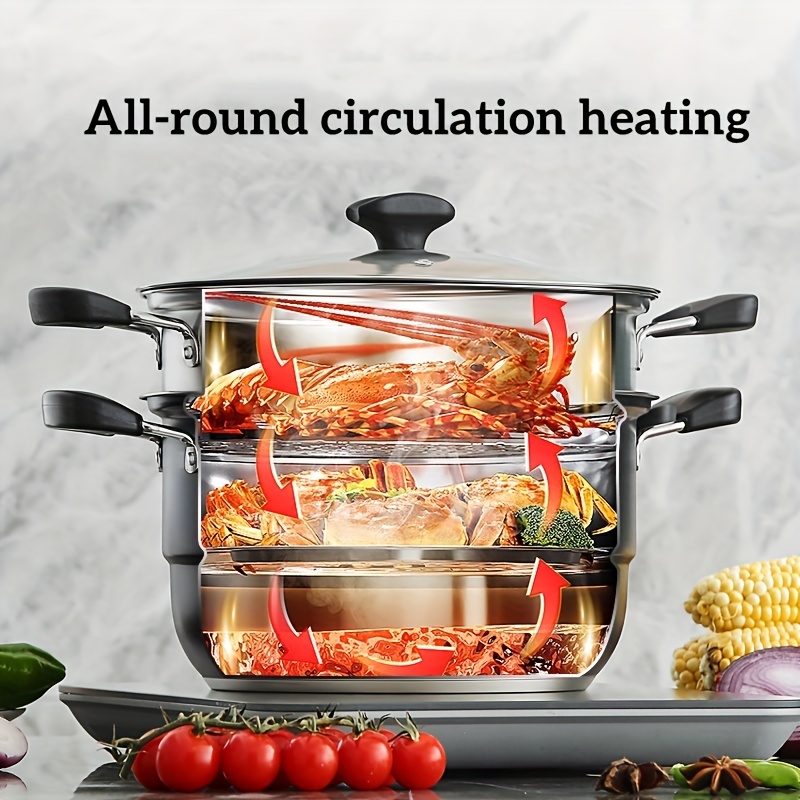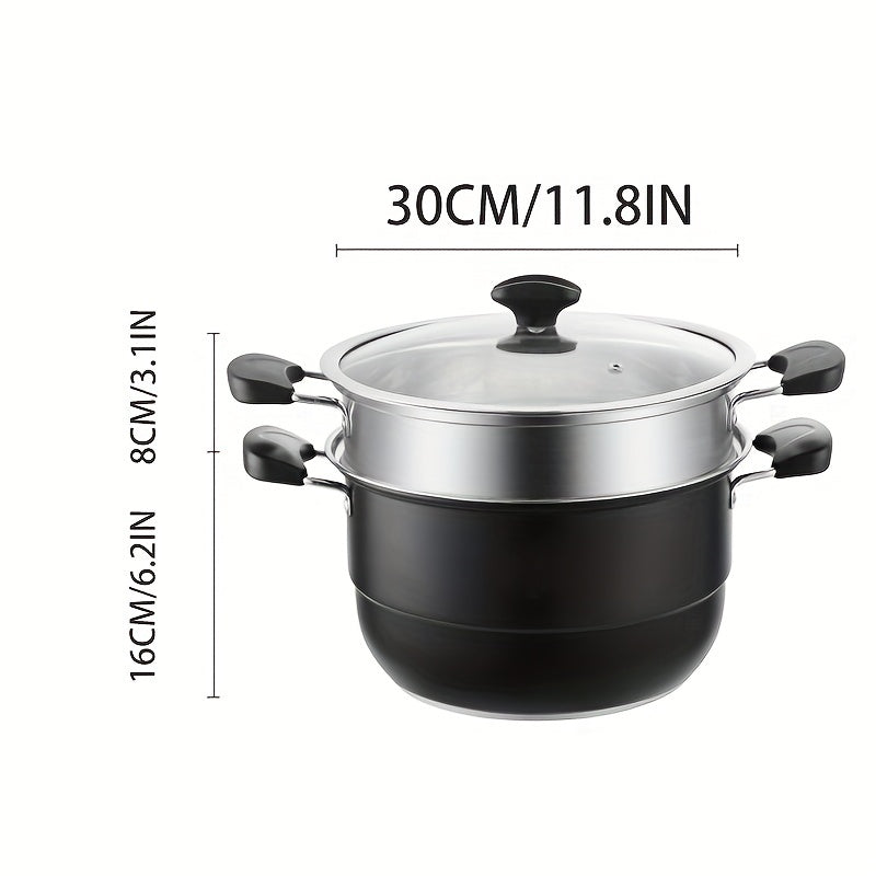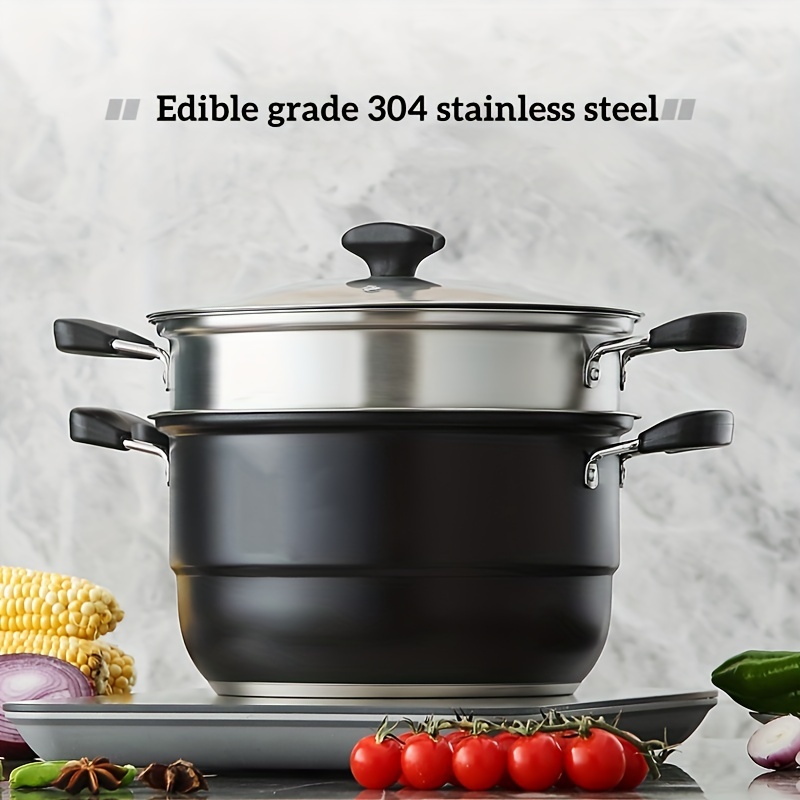 1pc, Steamer Pot (11.8''), 304 Stainless Steel Steam Pots, Optional Single Tier Or Double Tier Cooking Pot, Kitchen Utensils, Kitchen Gadgets, Kitchen Accessories, Home Kitchen Items