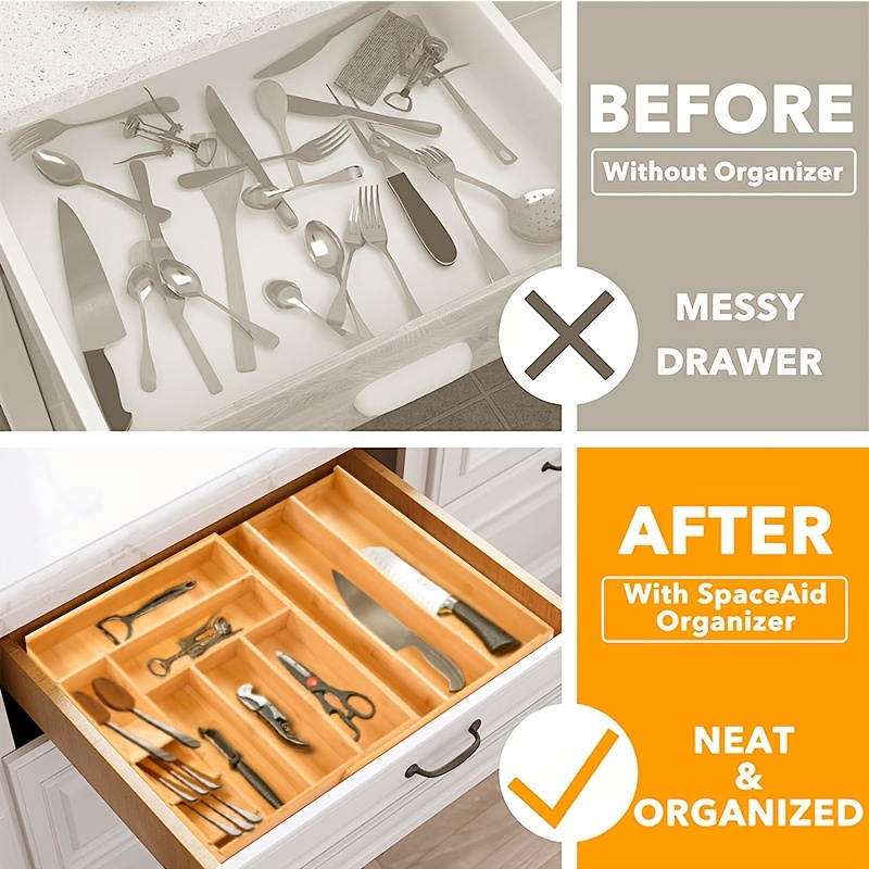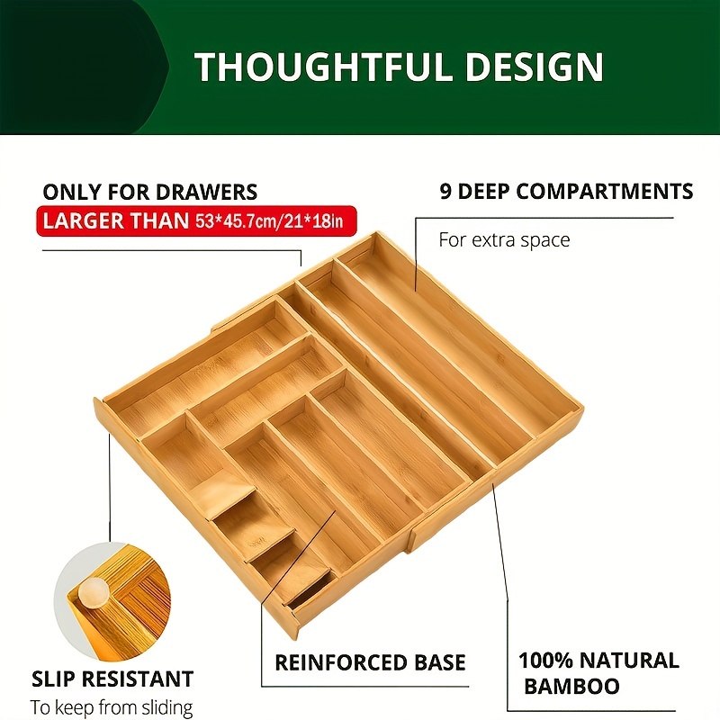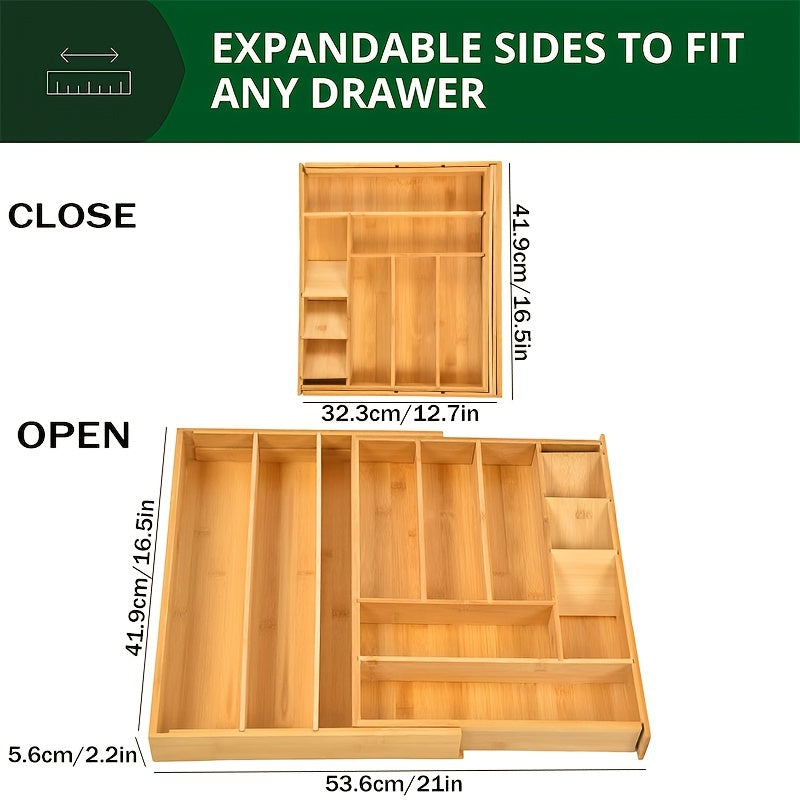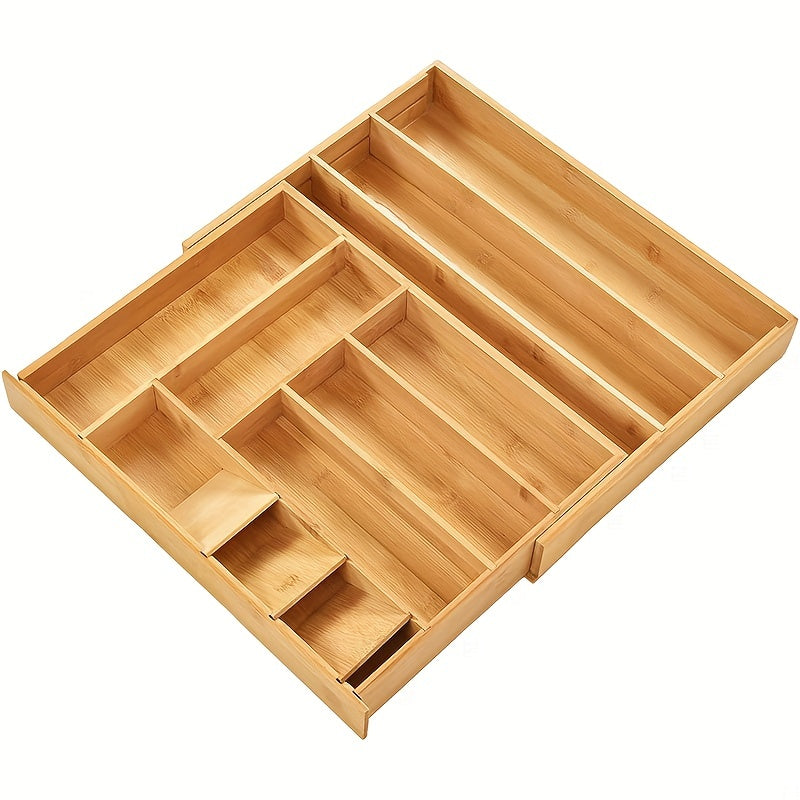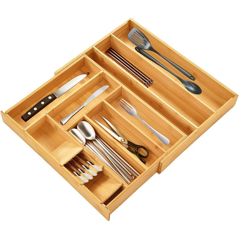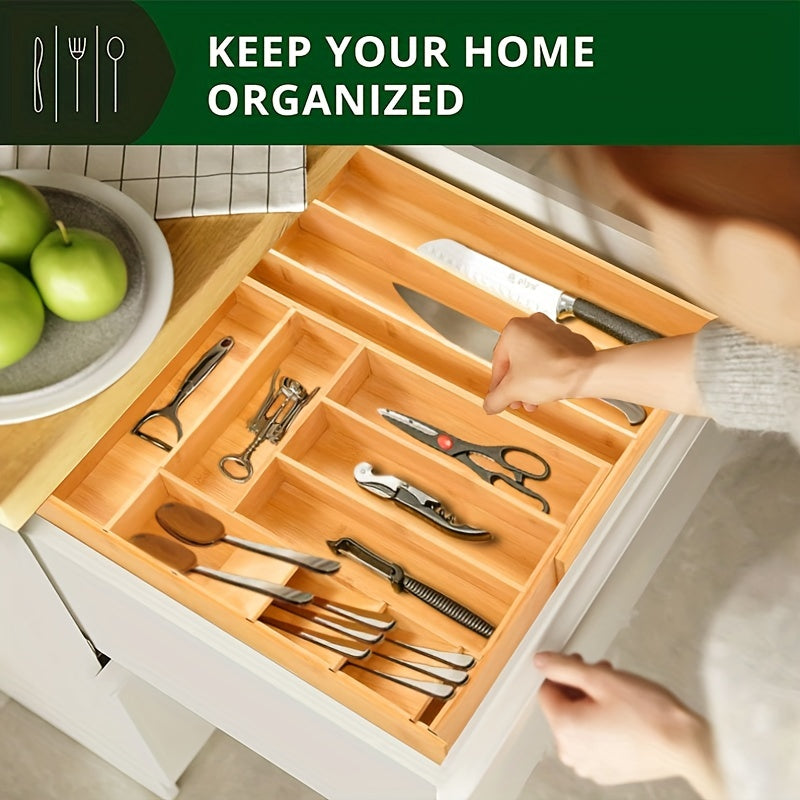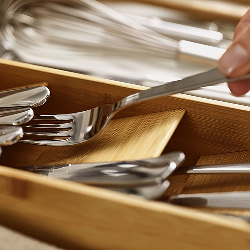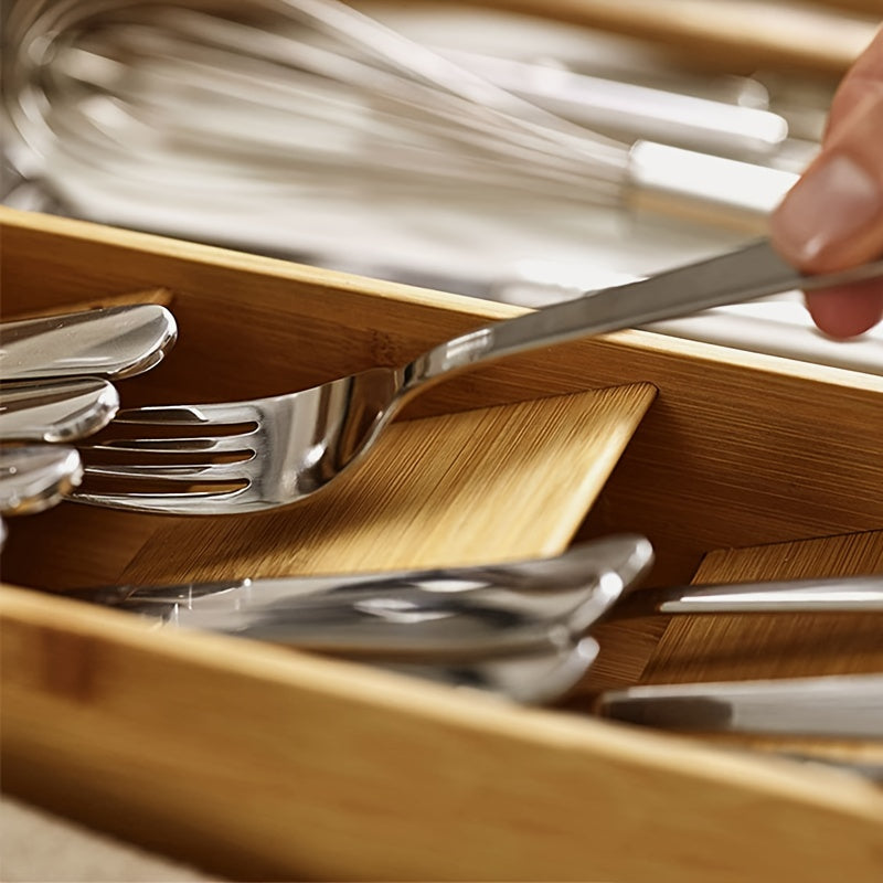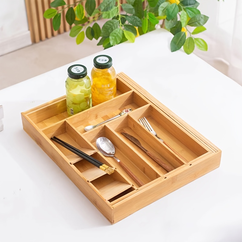 1pc Tableware Storage Box, Drawer Box, Silver Tray, Expandable Silver Storage Box, Bamboo Tableware Storage Box, For Kitchen Utensils And Tableware Storage, Home Kitchen Accessories