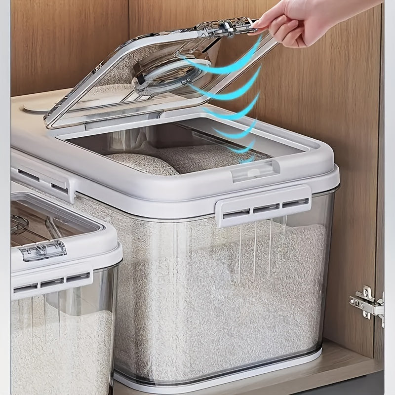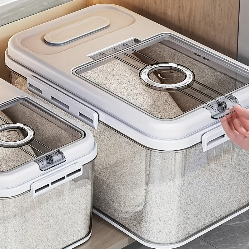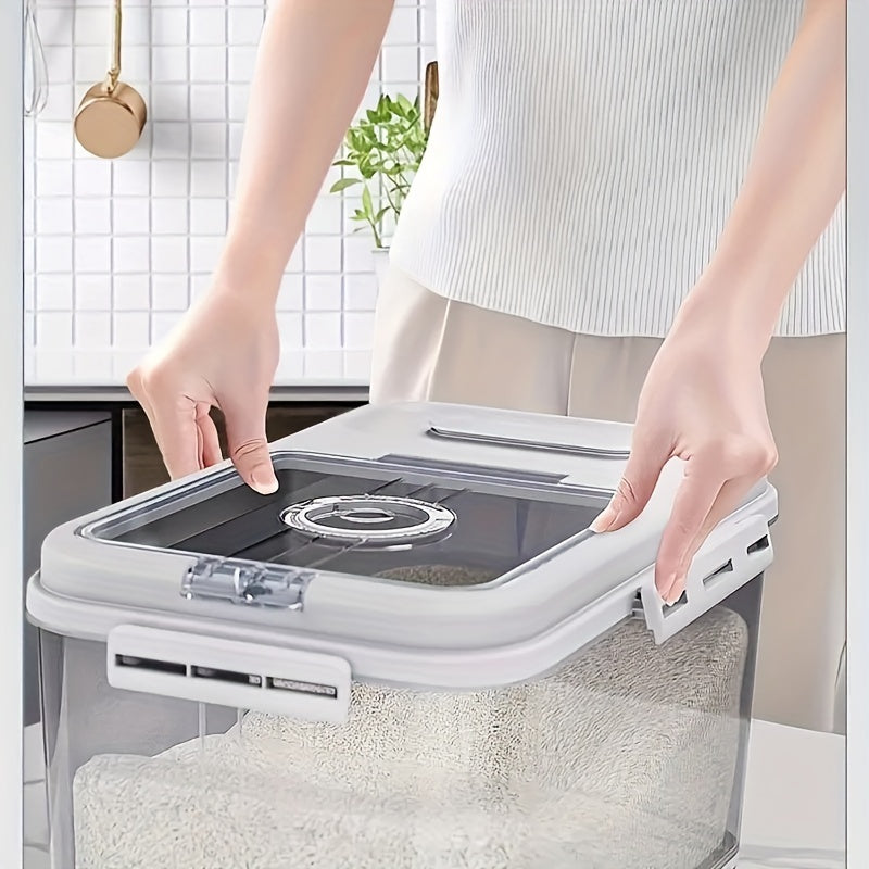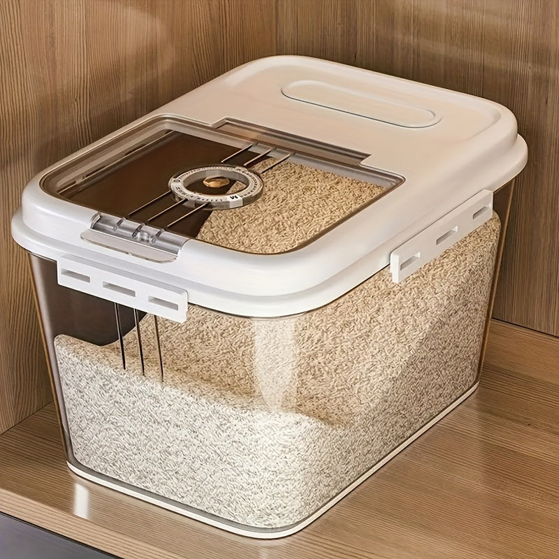 1pc Timing Rice Bucket, Moisture-proof Insect-proof Sealed Storage Containers For Rice, Cereals, Grains, Flours, Pet Food, Household Airtight Rice Dispenser, Food Storage Jar, Home Kitchen Supplies