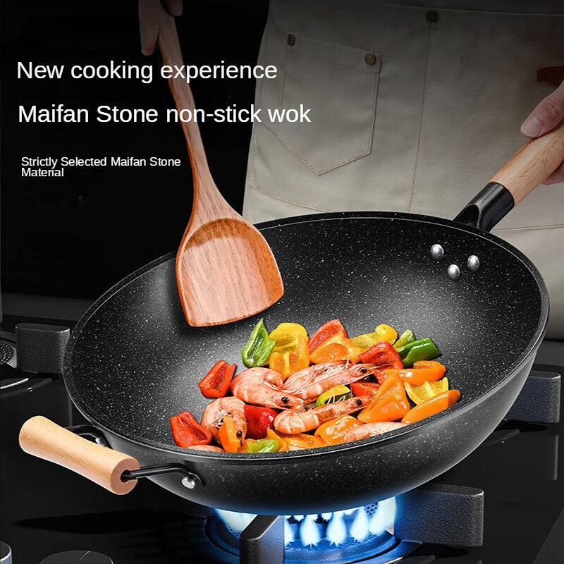 1pc, Woks & Stir-Fry Pans, Griddle, Chef's Pans, Non-Stick Maifan Stone Skillet, For Gas Stove Top And Induction Cooker, PFOA Free, Cookware, Kitchenware, Kitchen Supplies, Kitchen Items