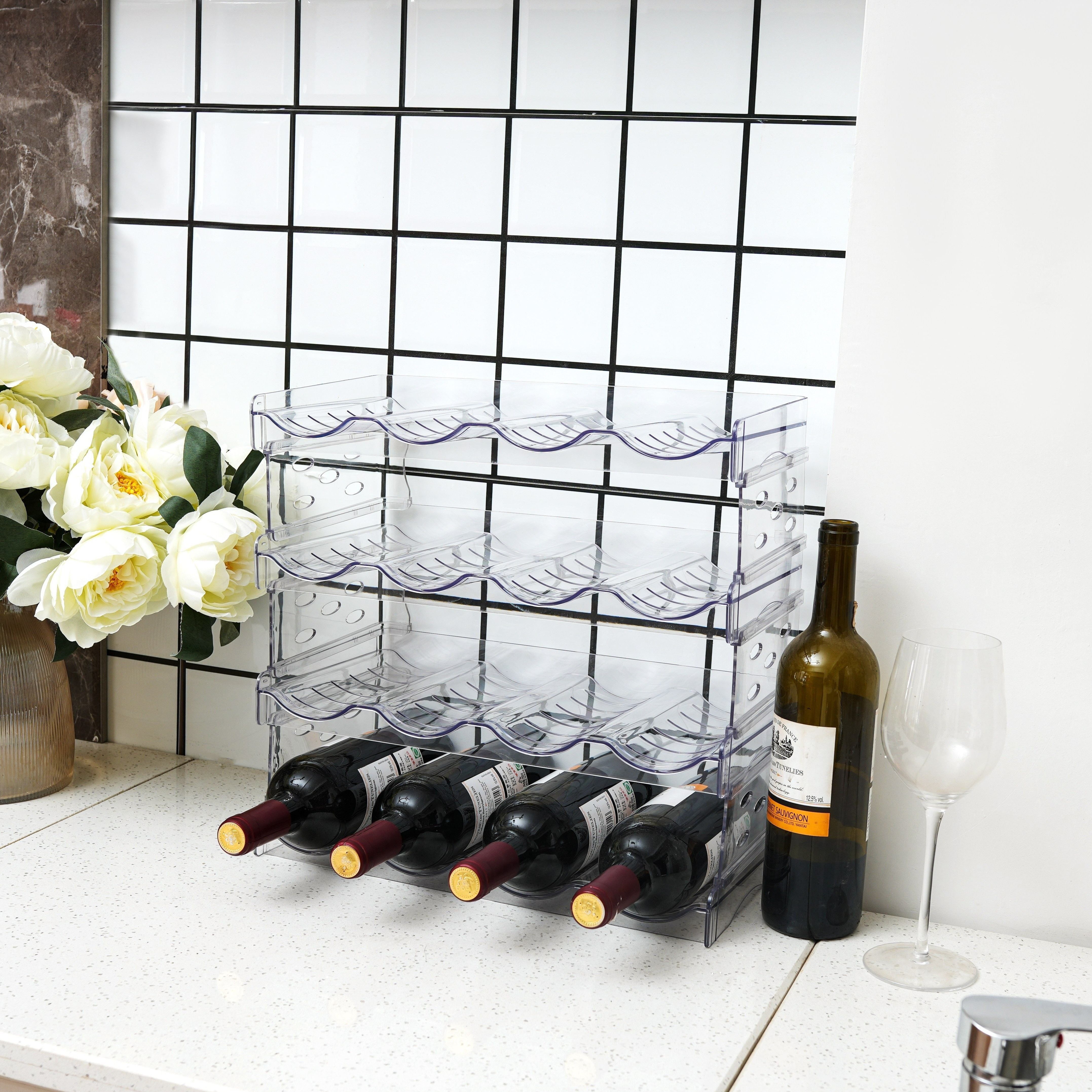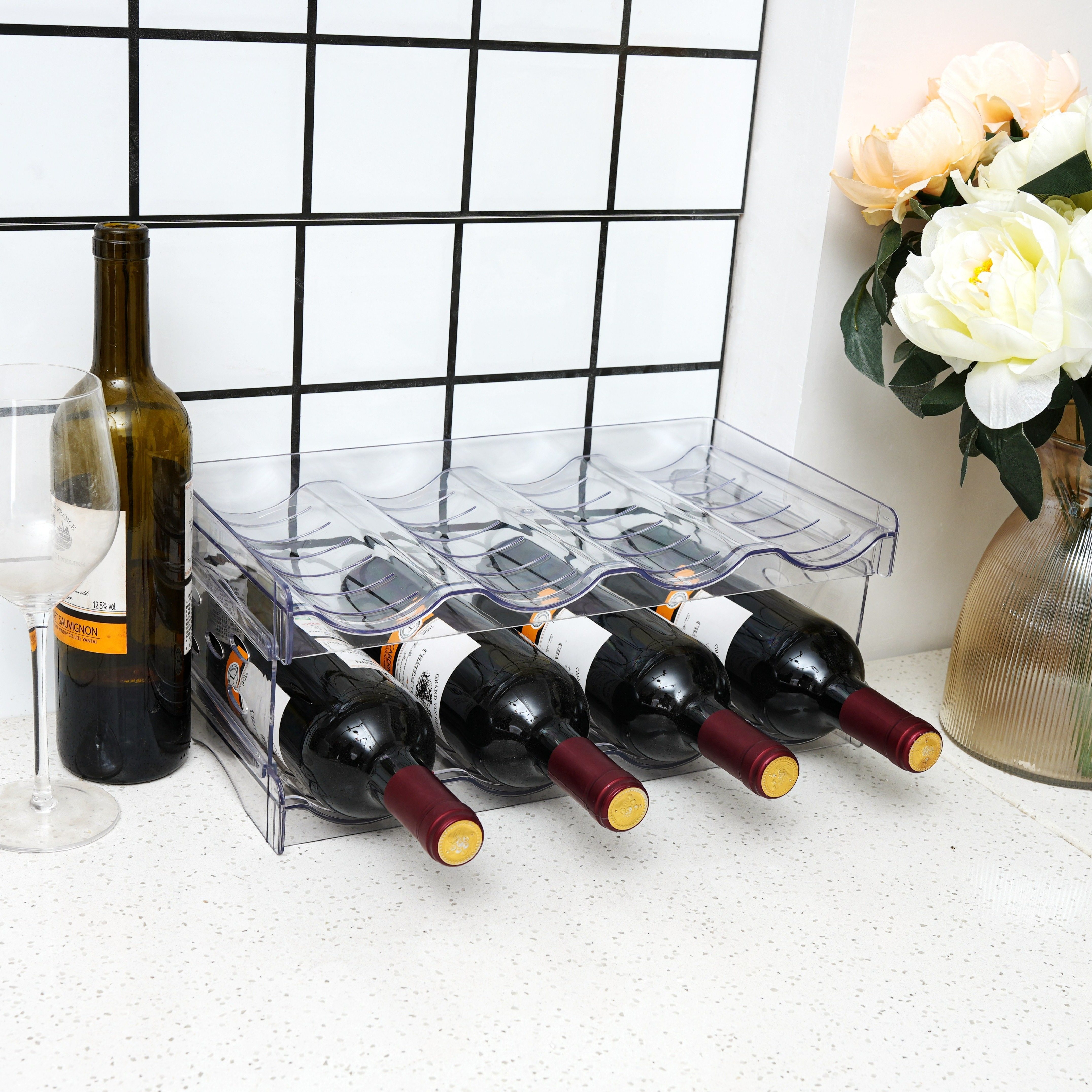 2/4pcs Set Stackable Wine And Water Bottle Holder, Free-Standing Fridge Wine Bottle Organizers, Clear Plastic Water Bottle Holder For Cabinet,Refrigerator,Pantry,Kitchen Countertops,Gym Or Yoga Room, Wine Storage Supplies