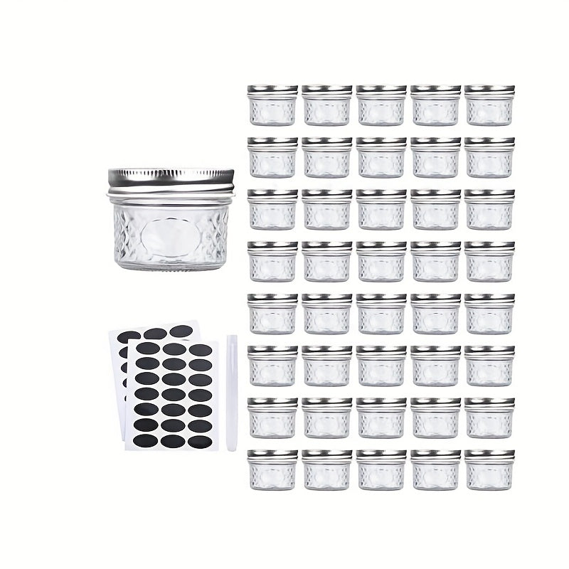 20pcs A2T41 Glass Jars, Sealed Jar, 4oz, Fish Sauce All-in-one Container With Silver Lid, Food Jars & Canisters Glass Multipurpose Round Latch Reusable Can, Home Kitchen Accessories