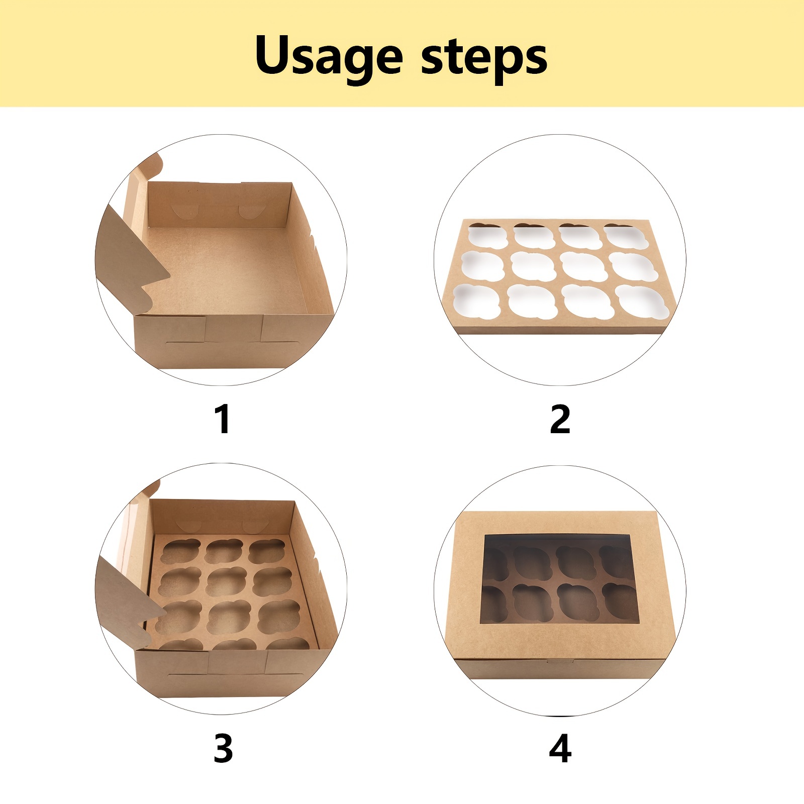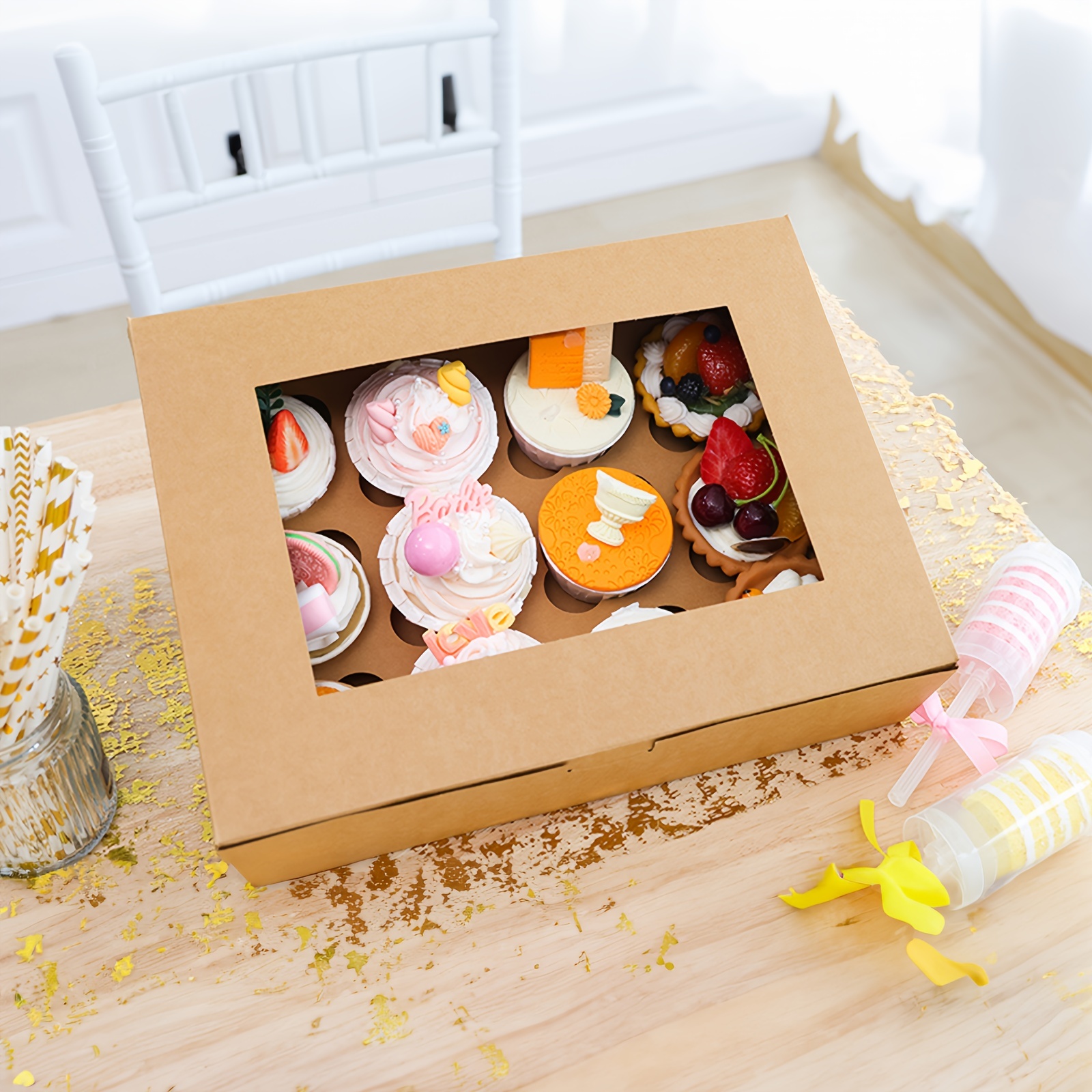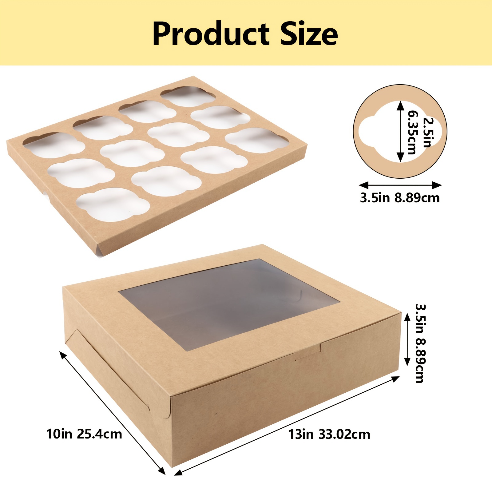 20pcs Cupcake Boxes, Brown Cupcake Containers With Windows And Inserts For Cupcakes, Muffins, And Pastries, Christmas, Kitchen Accessories 13 × 10 × 3.5 Inches