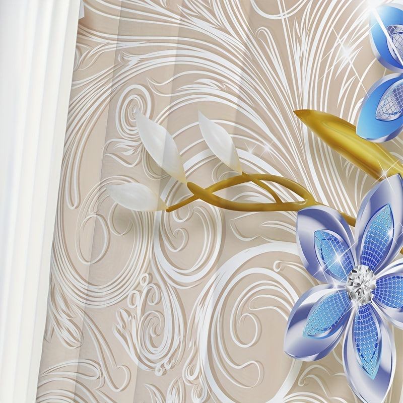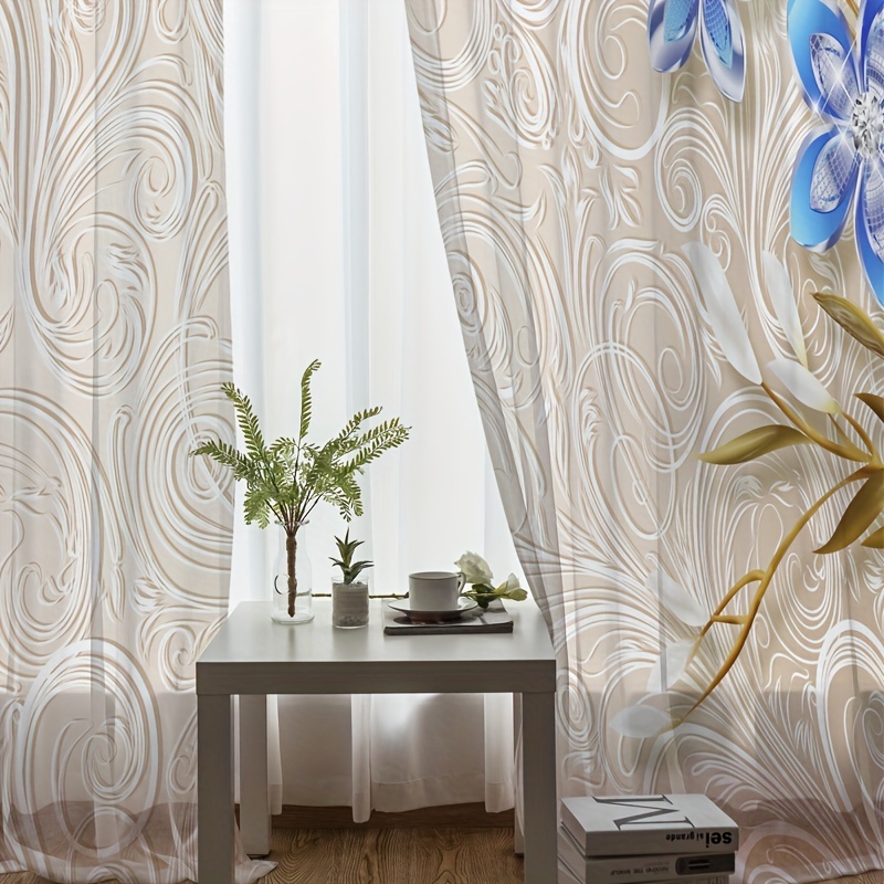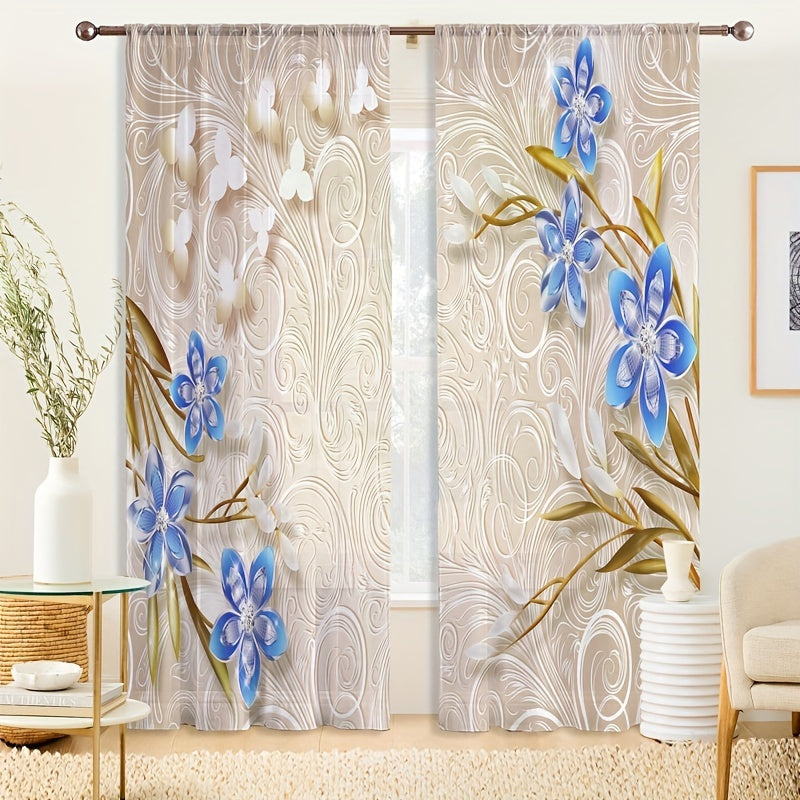 2pcs Flower Printed Curtain, Rod Pocket Window Treatment For Bedroom Office Kitchen Living Room Study Home Decor