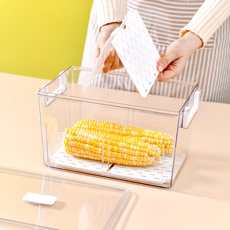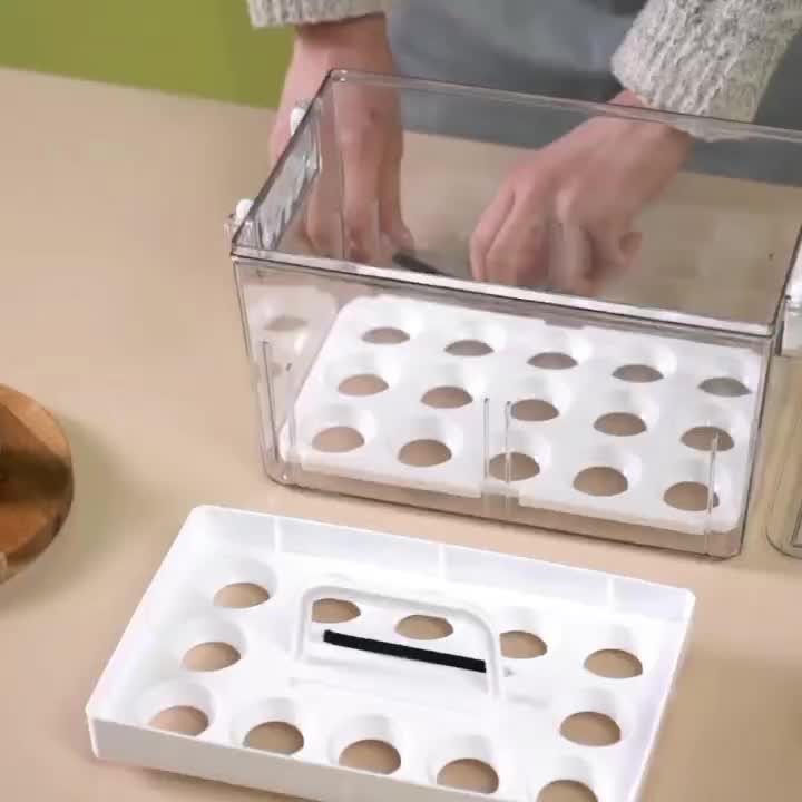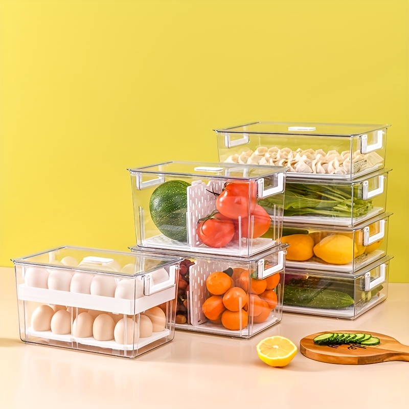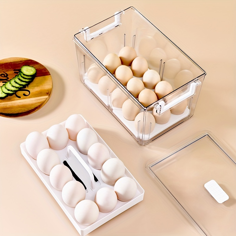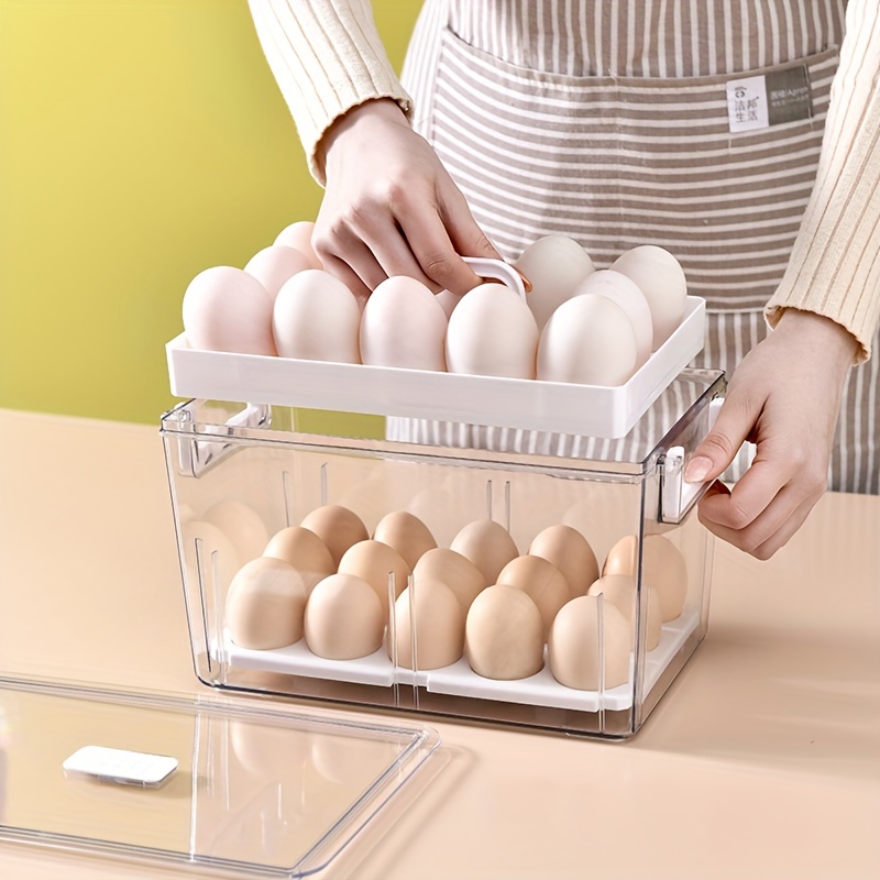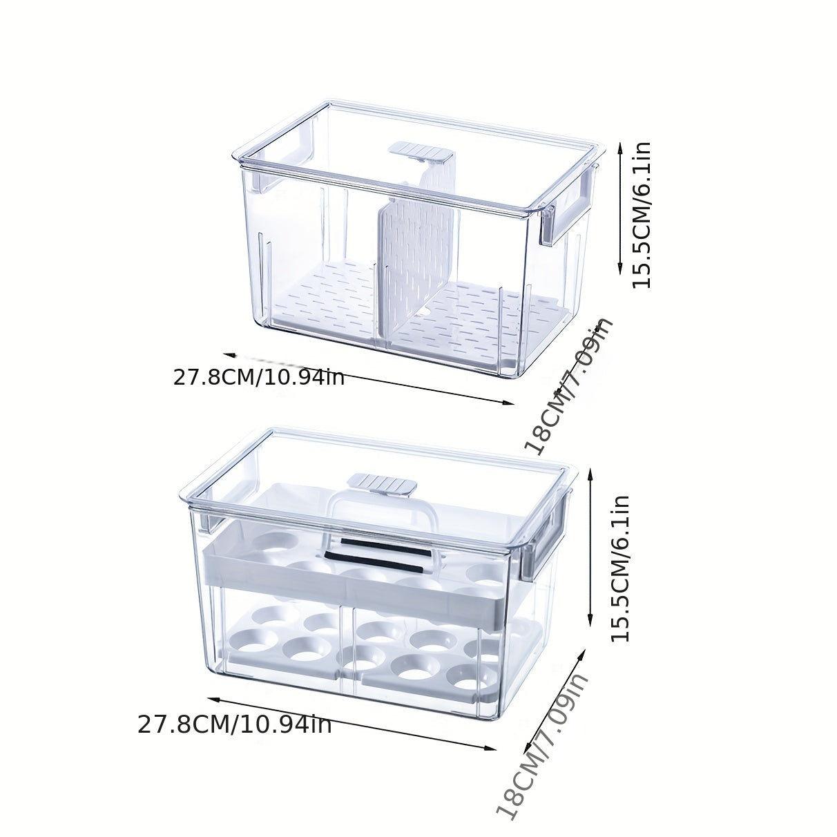2pcs Set Transparent Refrigerator Compartmented Storage Box, Double-layered Egg Carton, Fruit And Vegetable Box, Kitchen Beverage Fruit And Vegetable Drain Box, Egg Box, Kitchen Supplies