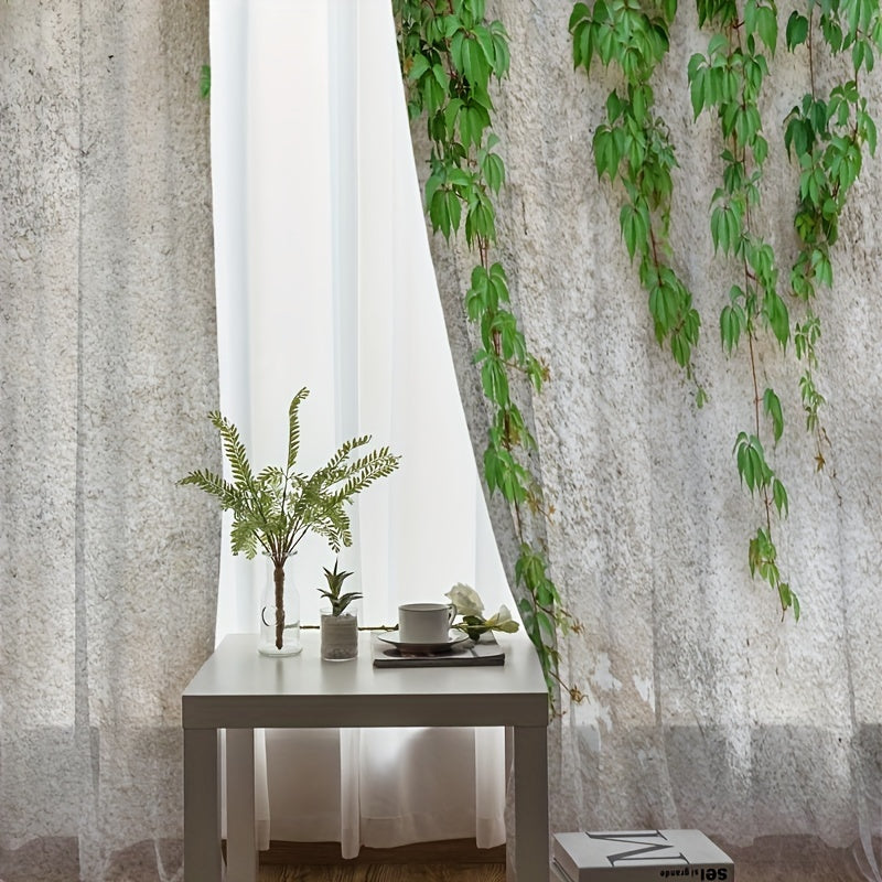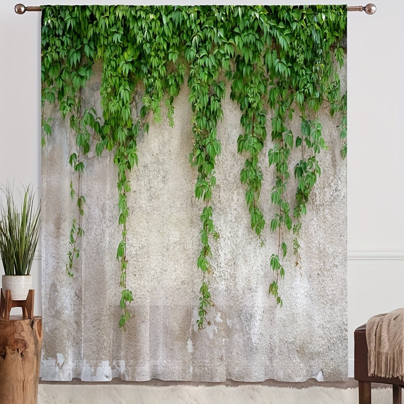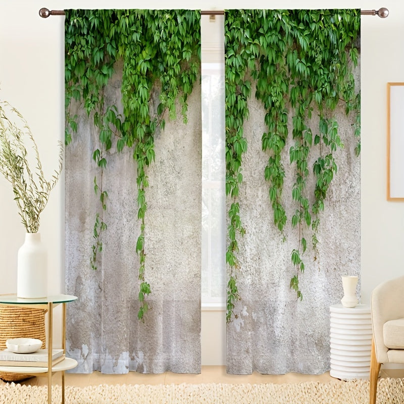 2pcs Stylish Tree Rattan Print Yarn Curtain for Home Decor - Rod Pocket Window Treatment for Bedroom, Office, Kitchen, Living Room, and Study