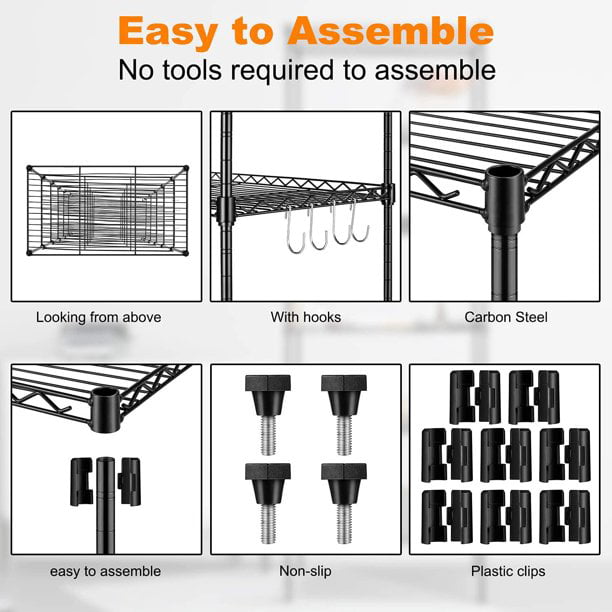 【Multi-Scene Use】This pantry shelves can be used almost anywhere, suitable for a variety of indoor and outdoor places, such as kitchen shelf, bedroom, living room, bathroom, garage, etc, to make a tidy kitchen, create a minimalist living room, keep the bedroom clean.