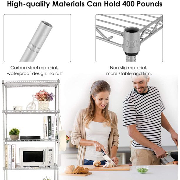 【Can Hold Big Appliances】the shelf is made of carbon steel with baked enamel finishes and anti-rust and can hold big appliances like microwaves, toasters, and bakers.