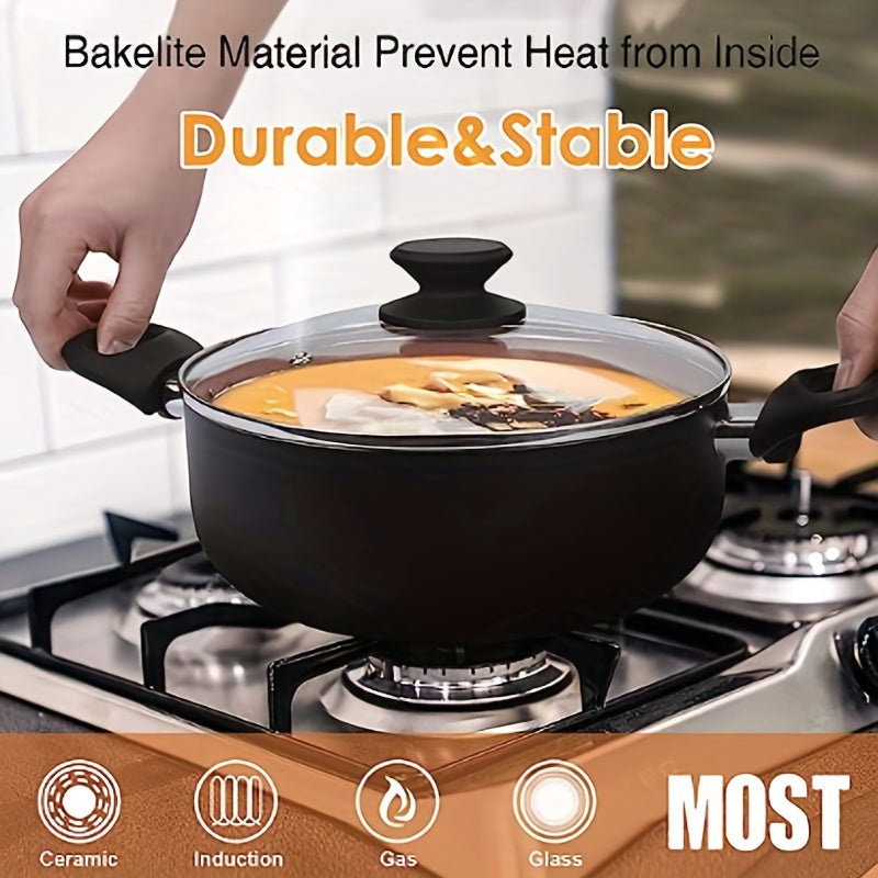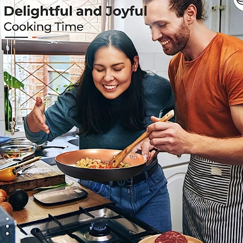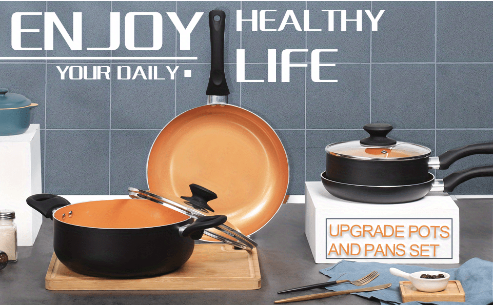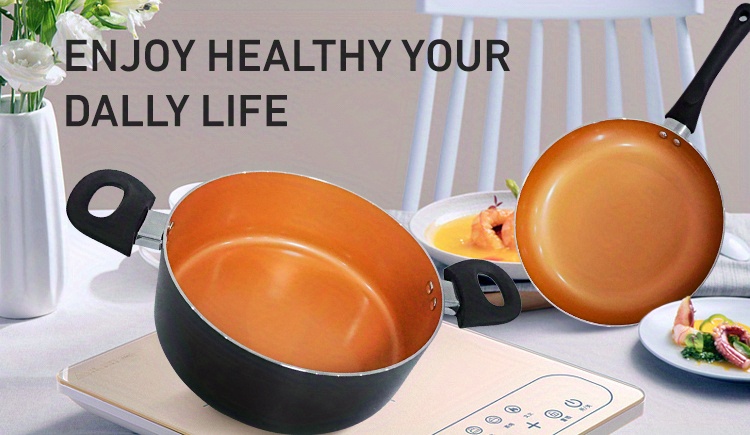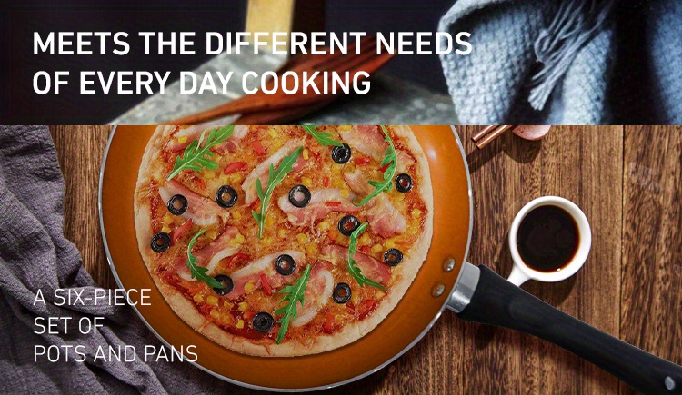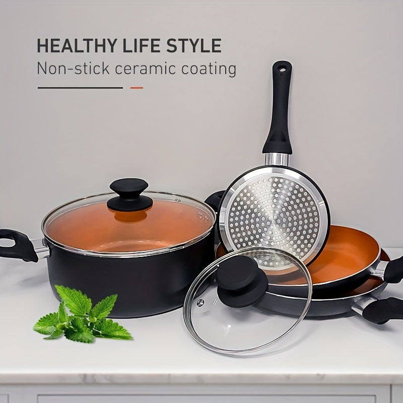 6pcs Nonstick Kitchen Cookware Set, Ceramic Coating Cooking Pot And Pans Set, Stock Pot/Milk Pot/Frying Pans Set, Copper Aluminum Pan With Lid, Induction/Gas Kitchenware Set