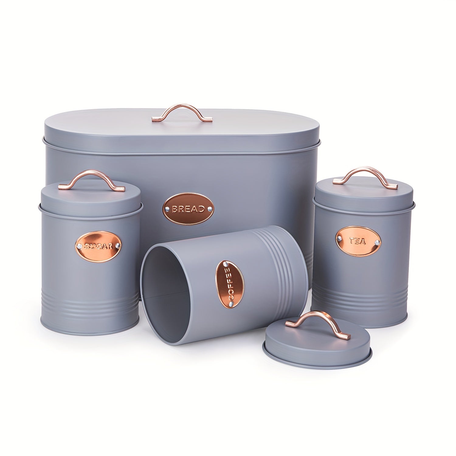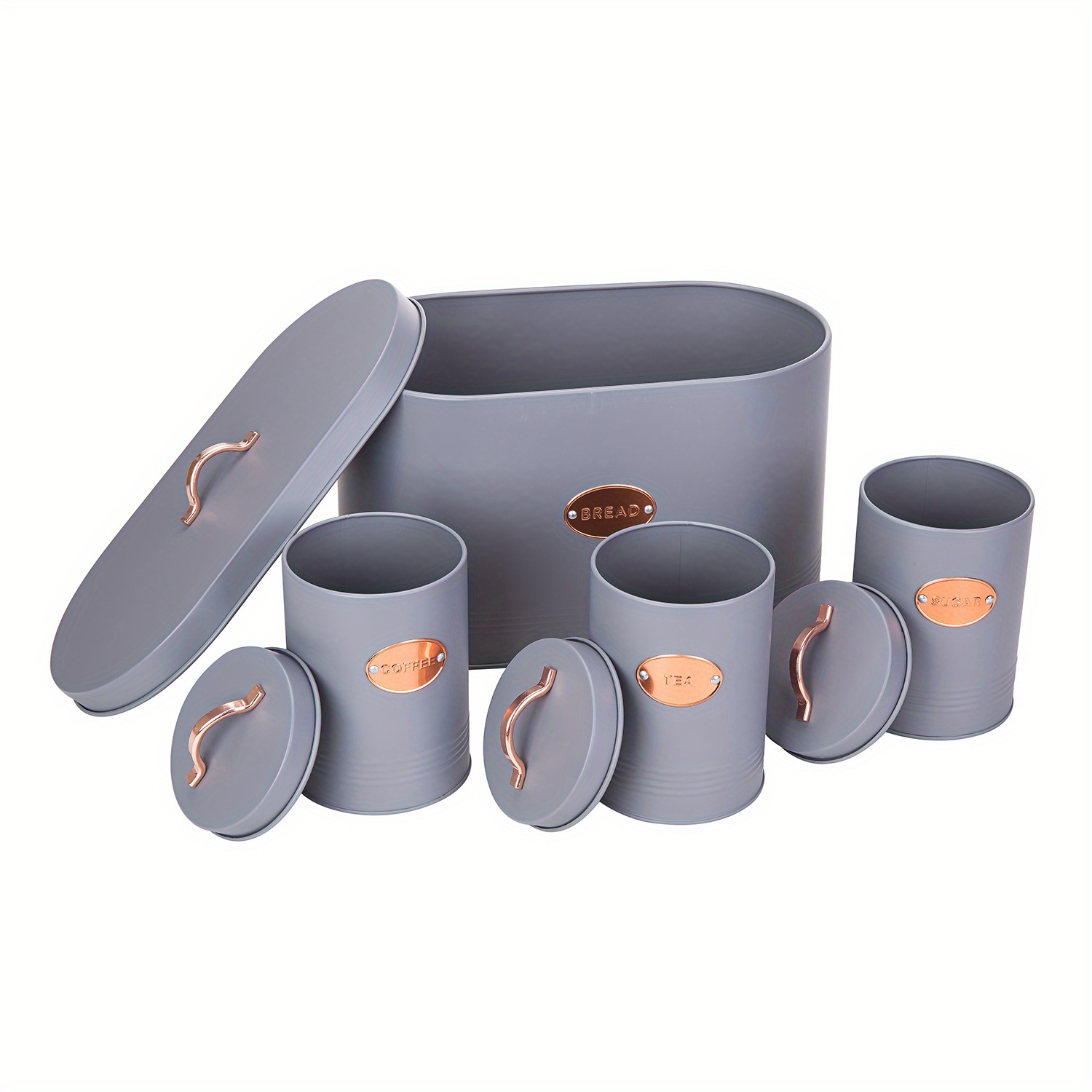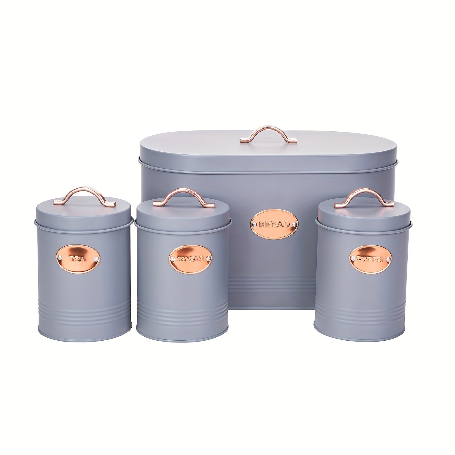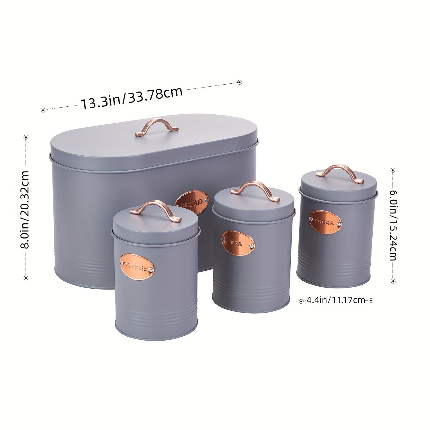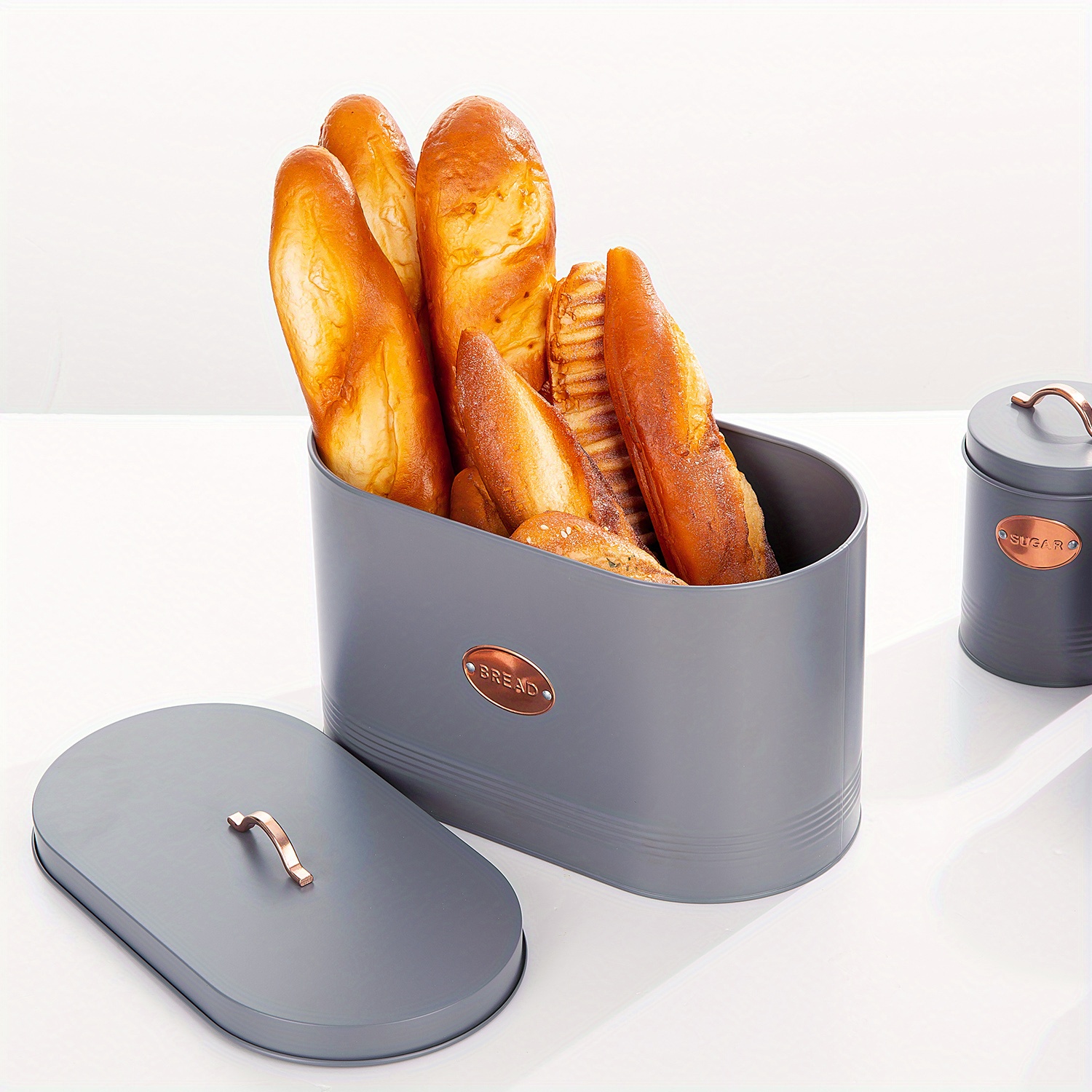 Set Of 4, Gray Breadbox Set, Metal Bread Box For Kitchen, Metal Bread Bin Storage Container, Reusable Bread Container For Loaves Pastries Dry Food, Kitchen Utensil