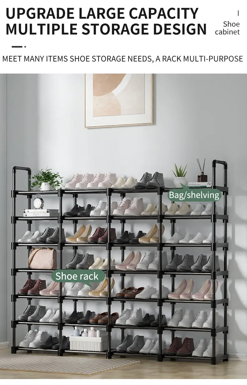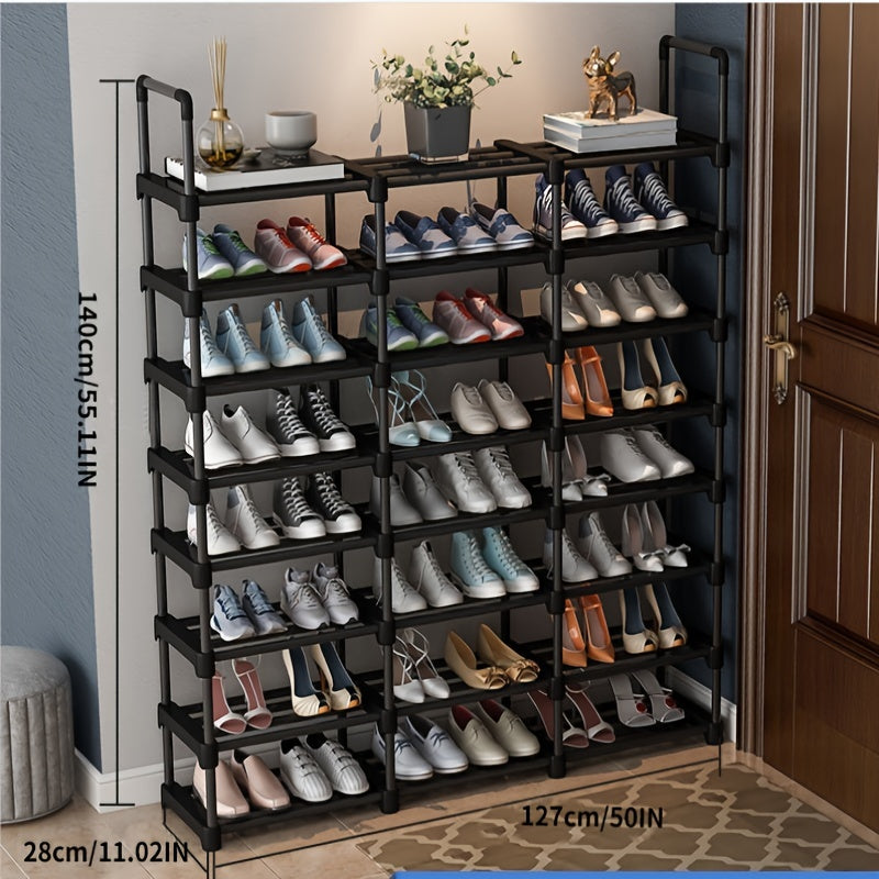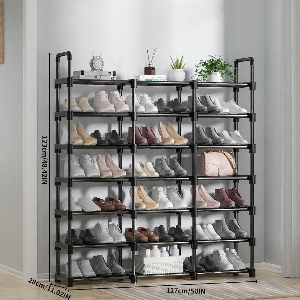 1pc Simple Shoe Rack, About 42/48 Pair Shoes Organizer, 3 Row 7/8 Tier Shoe Storage Shelf, Suitable For Home Entryway Office And Dorm, Space Saving Shoe Cabinet, Home Furnishing, Home Organization