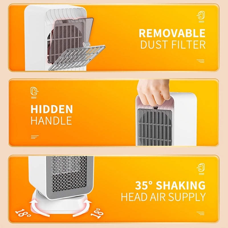 1pc Small Heater With Heating And Fan Modes 1000W US Plug Electric Heater Fan Low Noise 45 Degree Shaking Head Oscillating Air Space Cold Or Hot Air Dual Use Fan Household Winter Heater For Office Halloween Christmas Room Decor