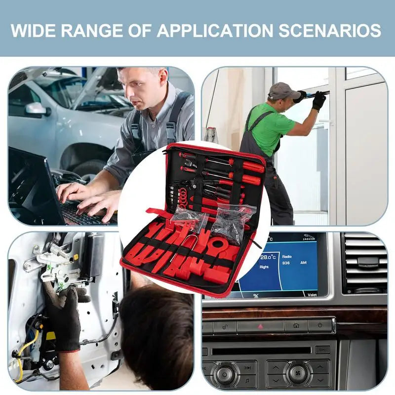 4.Space-saving Storage: Contains nearly all tools needed for assembly and disassembly, this trim removal tool comes with a portable zipper storage bag to easily store and retrieve tools when needed. Keep your car in top-notch conditions with this multifunctional kit.