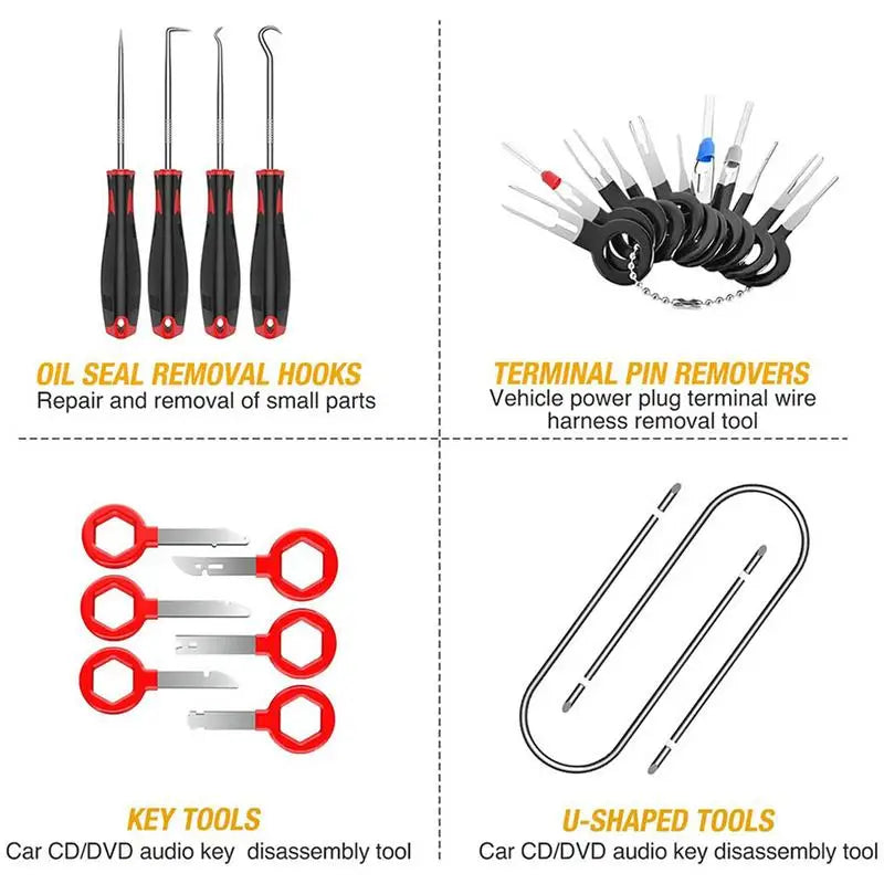 1.Ideal Tool Set: Ideal for both amateurs and professionals, this 102-piece trim removal tool set is designed to cater to all models, ensuring a smooth process for installing or removing door panels, slats, and fasteners. It's also perfect for furniture repair, maintenance, and upgrading car audio systems.