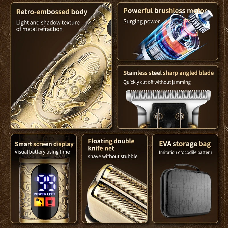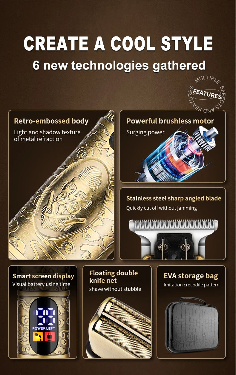 RESUXI 740 All Metal Hair Clippers + Ears Nose Hair Trimmer + Electric Shaver with Bag Men's Grooming Tools Hair Cutting Machine