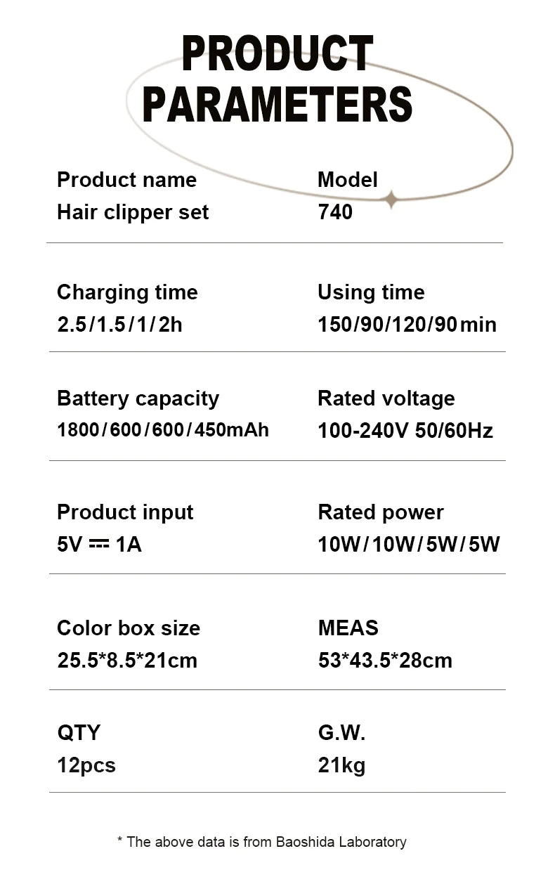 Product Model: 740 hair clipper sets;