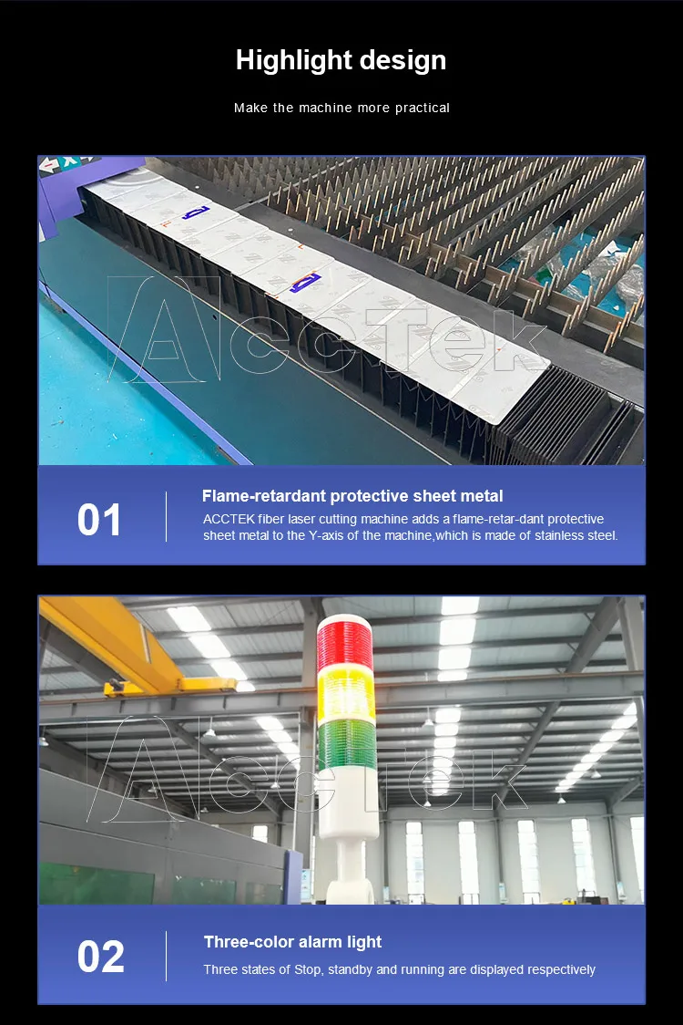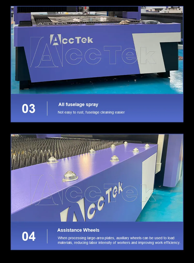 AccTek Fiber Laser Cutting Equipment is suitable for metal cutting with Stainless Steel Sheet(tube), Mild Steel Plate(tube),