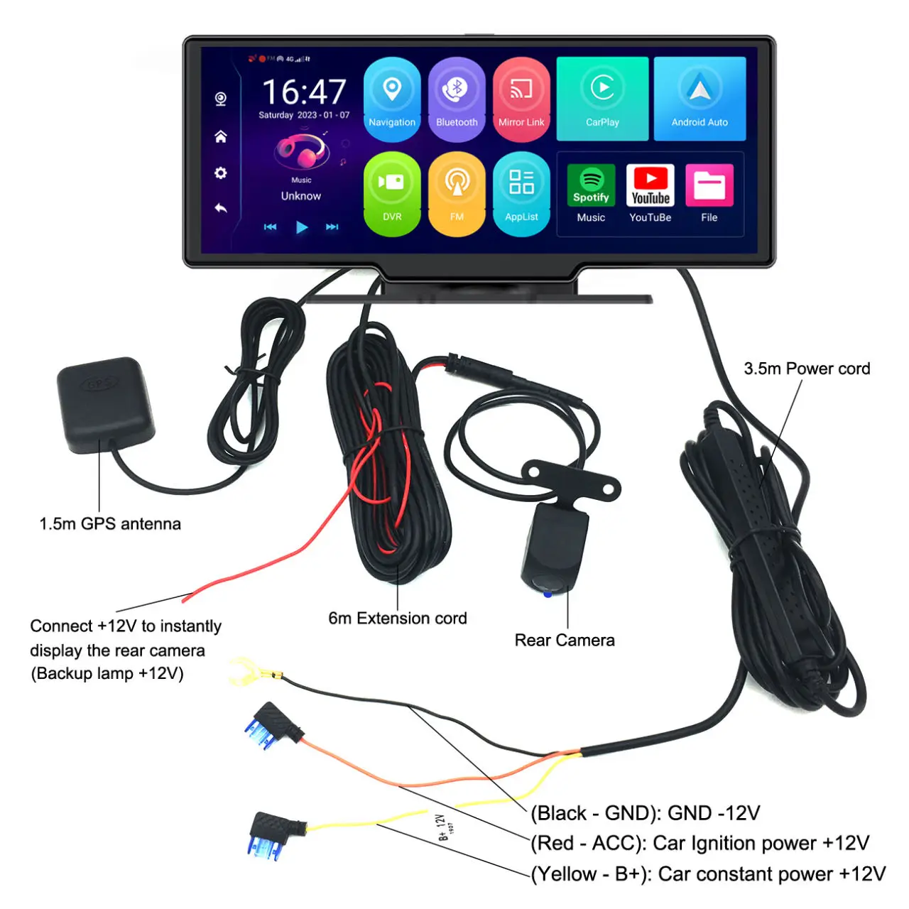 It support the wireless carplay connection with your iPhone, and sync the Phone interface to DVR screen,