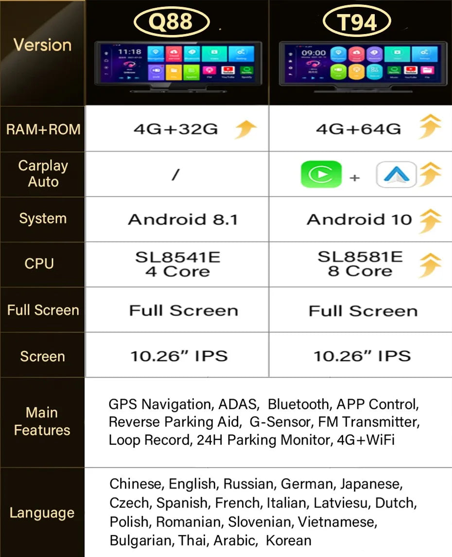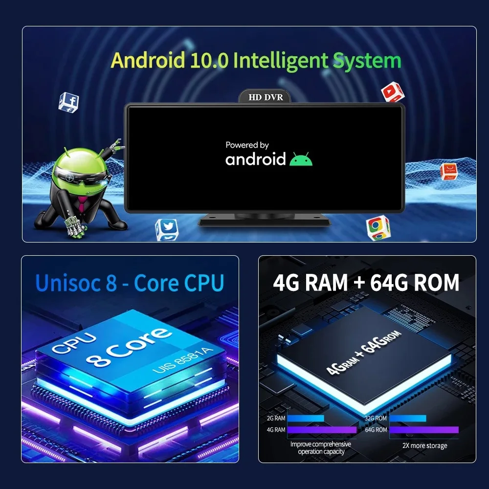 Apple Carplay+Android Auto+Android 10+Screen Mirror+8 Core CPU+RAM 4G ROM 64G