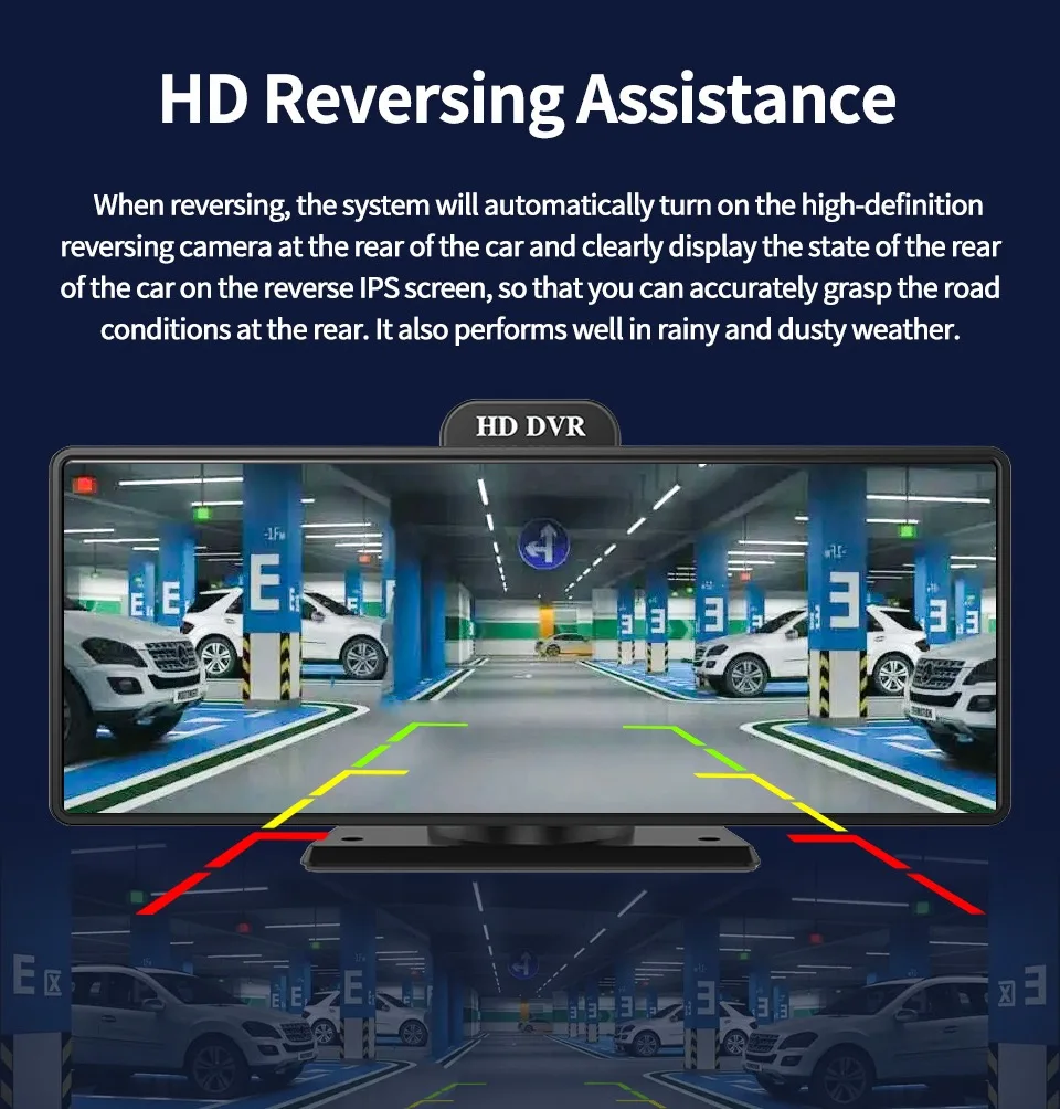 When reversing, the system will automatically turn on the high-definition reversing camera at the rear of the car and clearly display the state of the rear of the car on the reverse IPS screen, so that you can accurately grasp the road conditions at the rear. It also performs well in rainy and dusty weather.