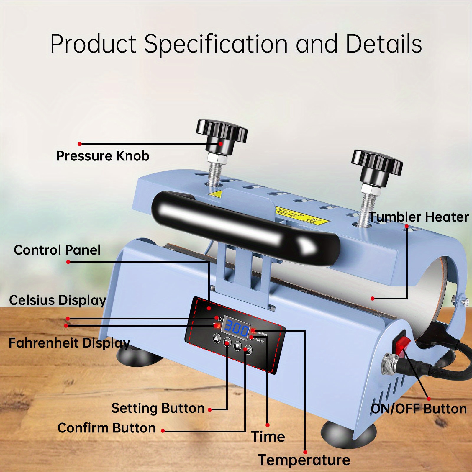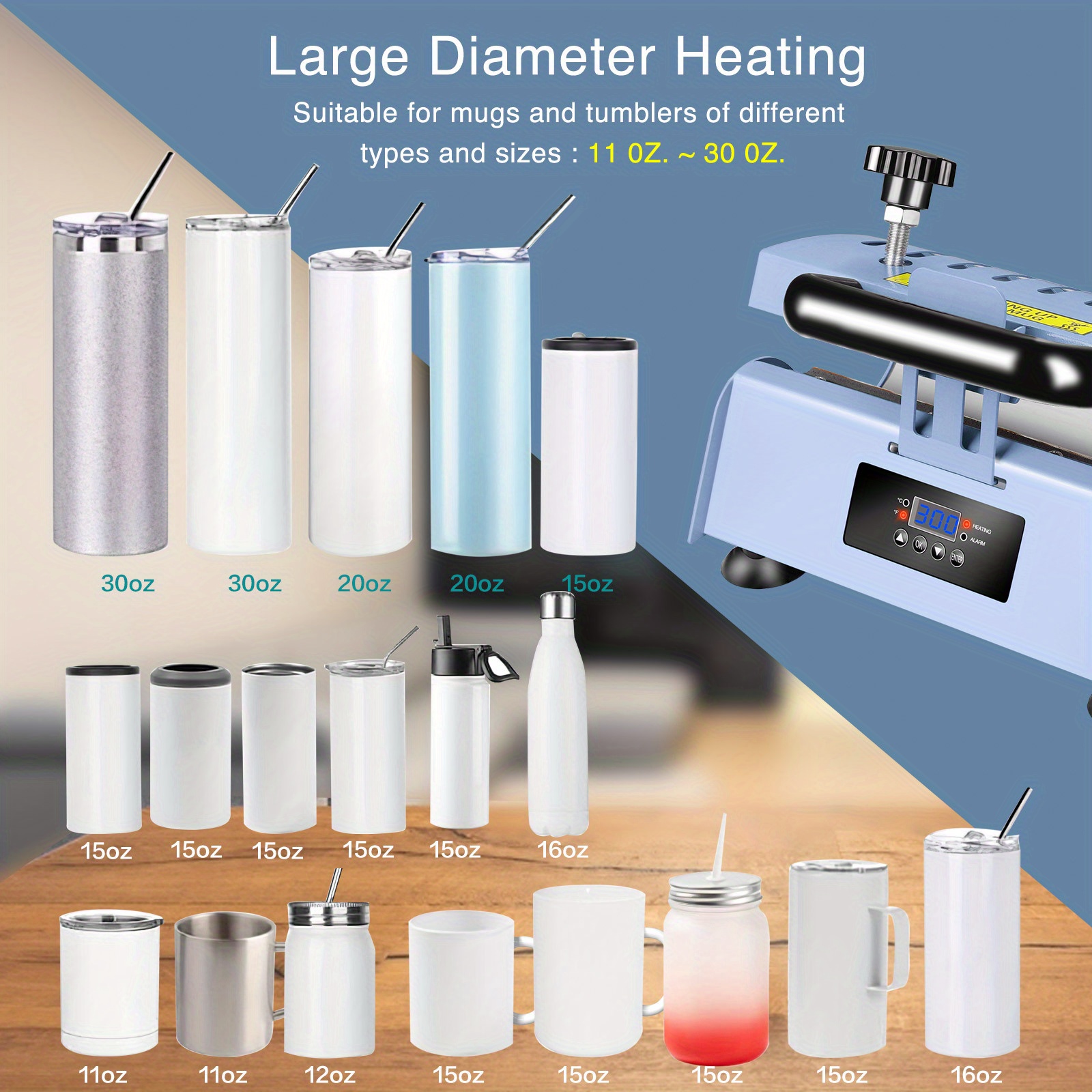 110V Portable Non-Falling Over Heat Press Machine Mug Machine For 30 Oz (about 850.5 G), 20 Oz (about 567.0 G), 16 Oz (about 453.6 G) Straight Up China Ceramic Cup DIY Heat Transfer Print