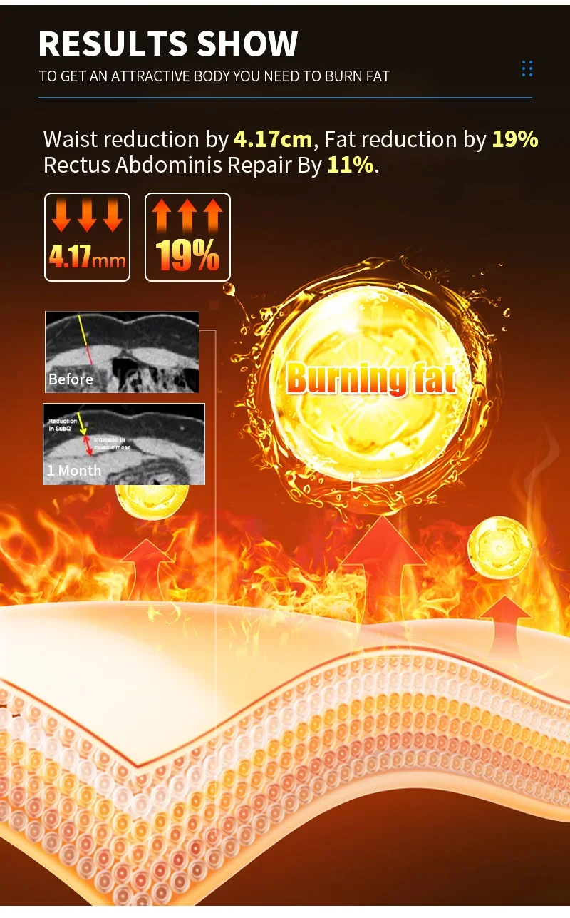Get ready for a remarkable 16% average increase in muscle mass, helping you achieve the sculpted physique you've always desired. Not only that, but you can also expect an impressive 19% average reduction in fat. It's time to reshape your body with EMSZERO .