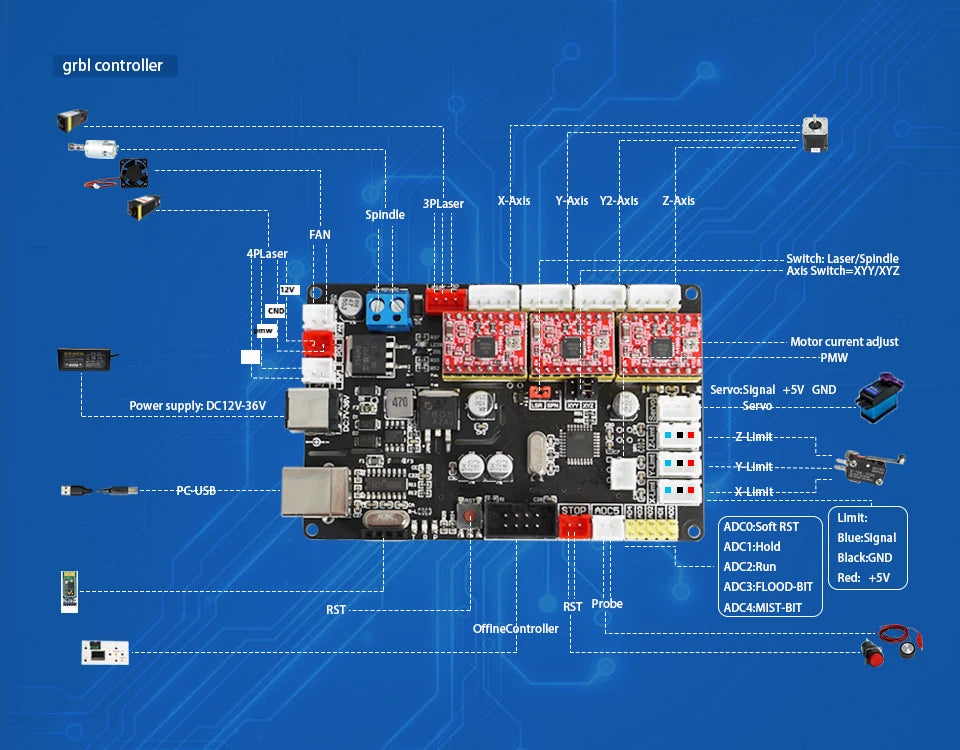 It is GRBL controlboard, support pmw and ttl signal, support 3 axis X Y Z, it can work with laser also cnc Z kit, it can compatible for many different software, recommend use lightburn and lasergrbl.
