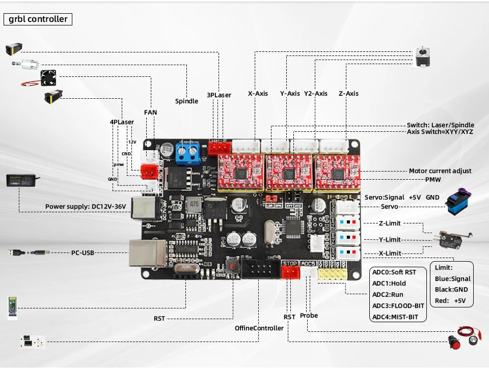 It is GRBL controlboard, support pmw and ttl signal, support 3 axis X Y Z, it can work with laser also cnc Z kit, it can compatible for many different software, recommend use lightburn and lasergrbl.