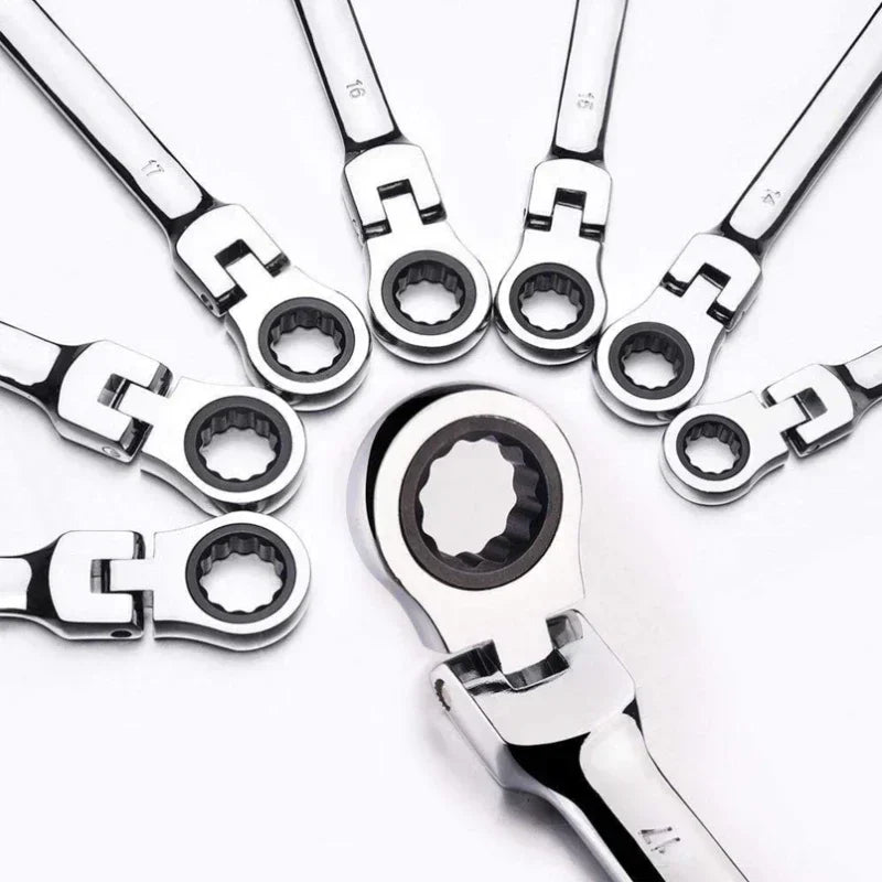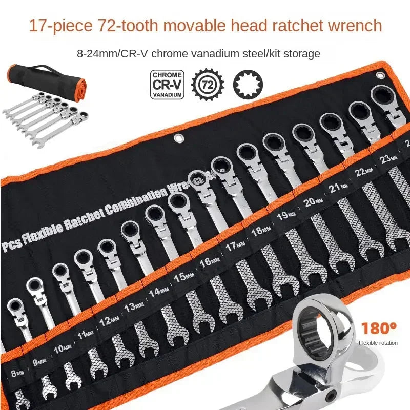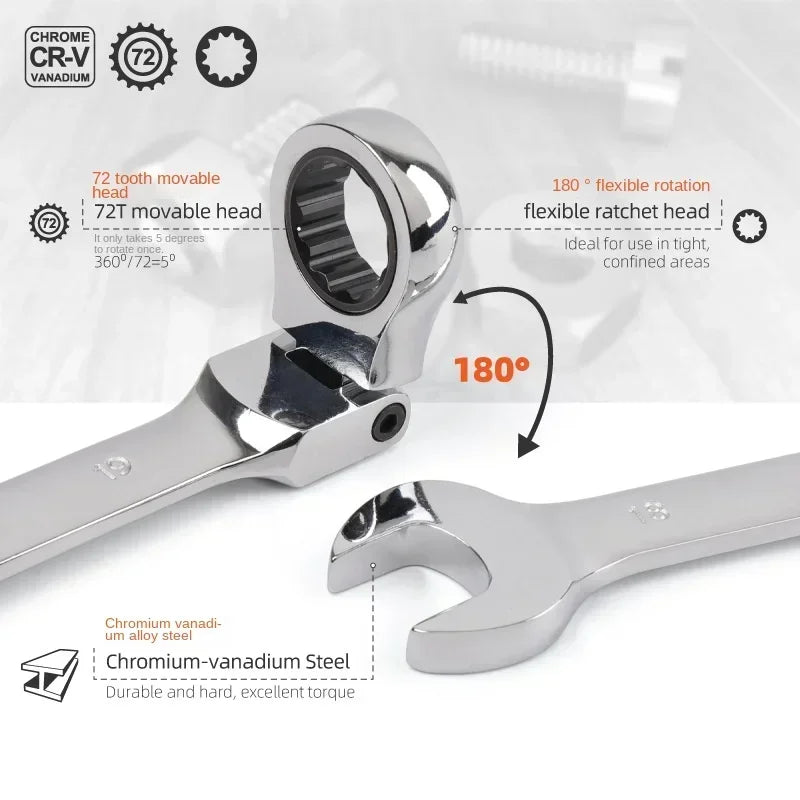 Steel body and chrome vanadium gear flexible double-end combination ratchet wrench set - open and flexible ratchet ring.