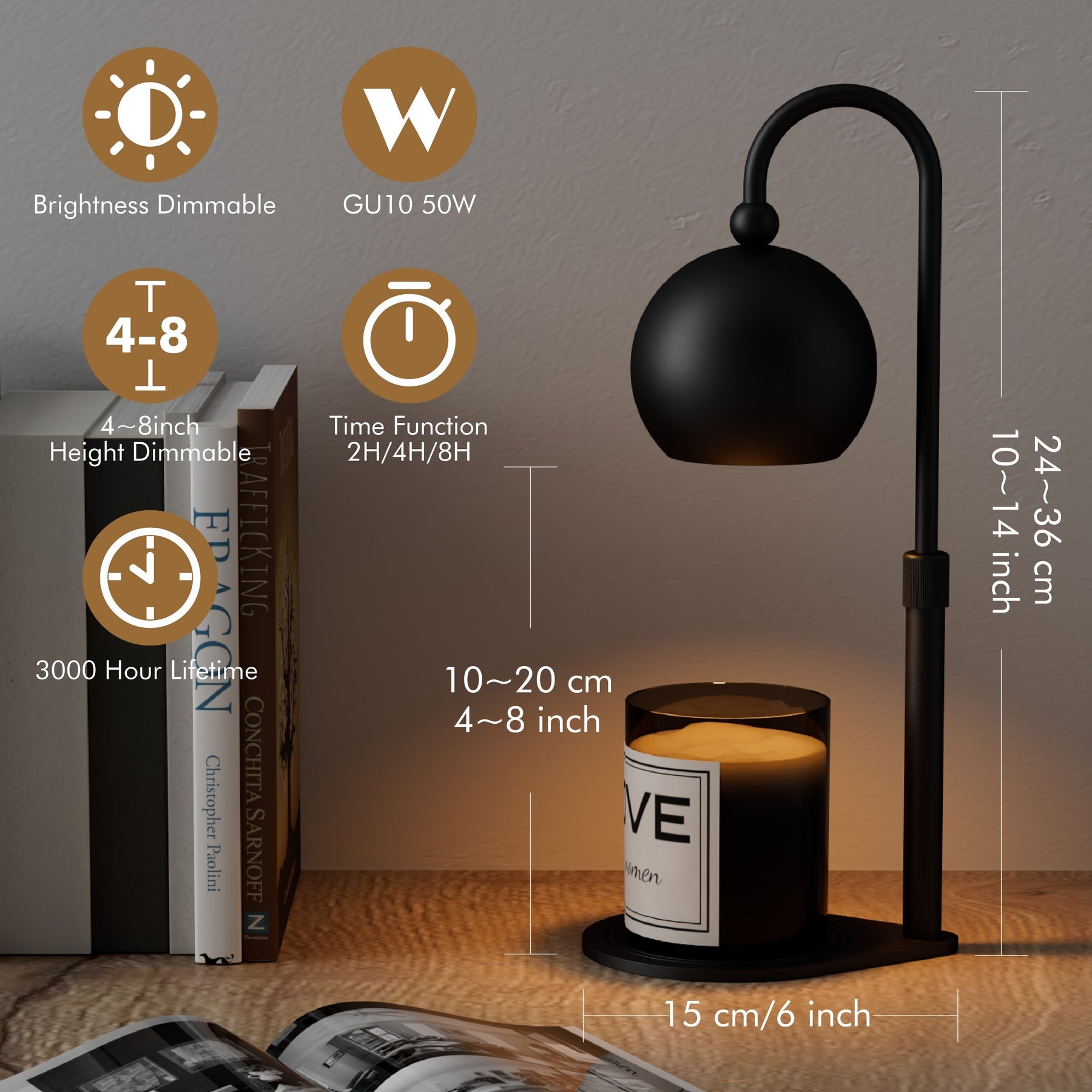 1pc, Candle Warmer Lamp, Fashionable Metal Ball Design, Height Timer Brightness Adjustable, For Scented Wax Melting Comes With An Extra 50W Bulb (Black)