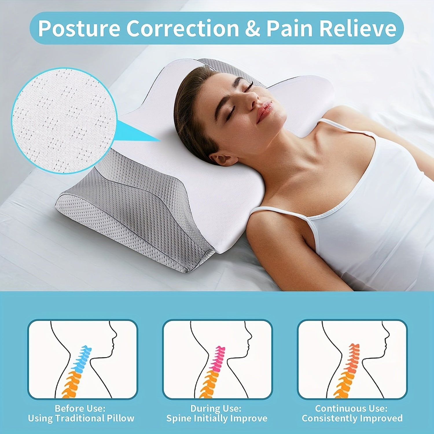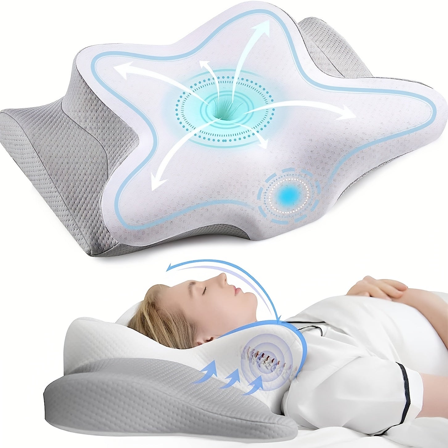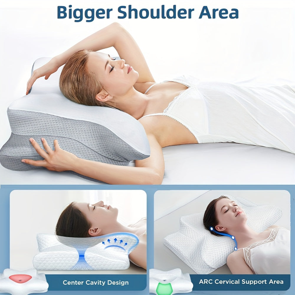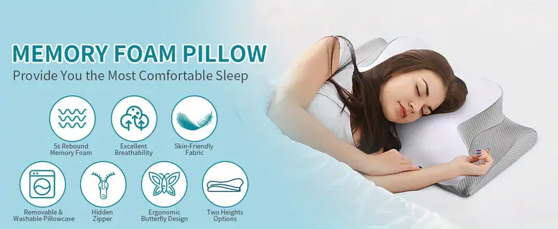 【Breathable Skin-friendly Pillowcase】 - Our neck pillows for sleeping with removable and washable pillowcase adopts unique butterfly design. There are specific grooves that allows your arms to go under for comfortable sleep. Its soft & breathable fabric keeps you cool all night, give you the comfortable sleep you want!