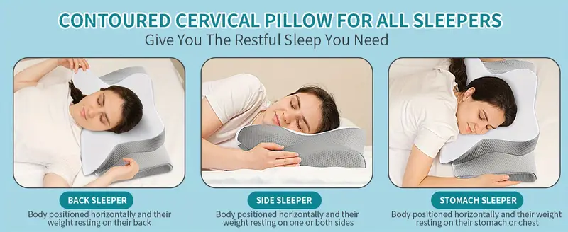 【2 Heights for Neck Support】 - Do you often toss and turn because you can't find the height that suits you? Featured with the size of 24.8×14.5×5.1 inches, our ergonomic pillow is perfect for all positions of sleepers. The neck pillow is designed to provide optimal support to your head, neck, and shoulders, reducing tension and helping to alleviate neck pain. Designed with different heights on both sides for you to choose, so you can choose the one which is more suitable for you.