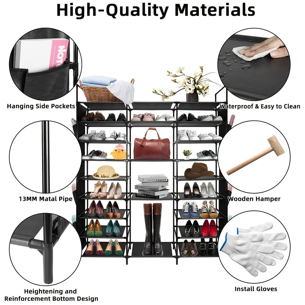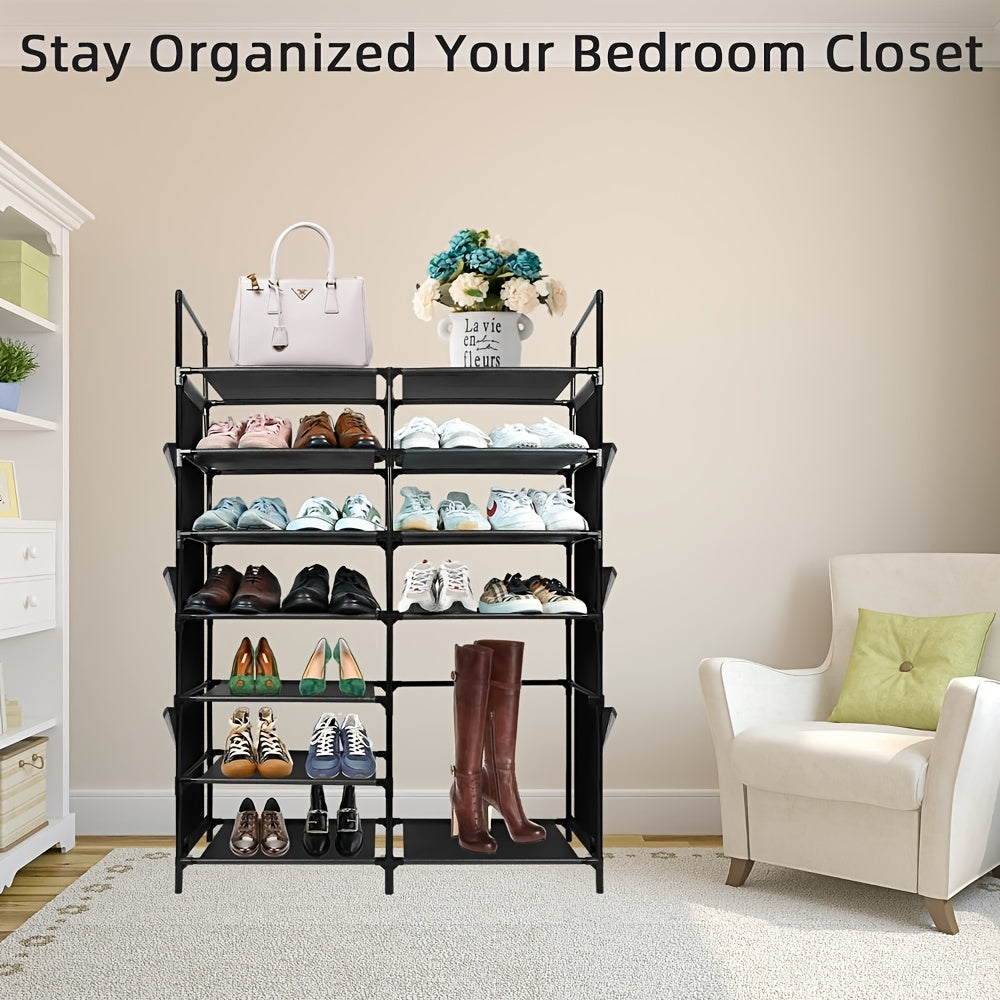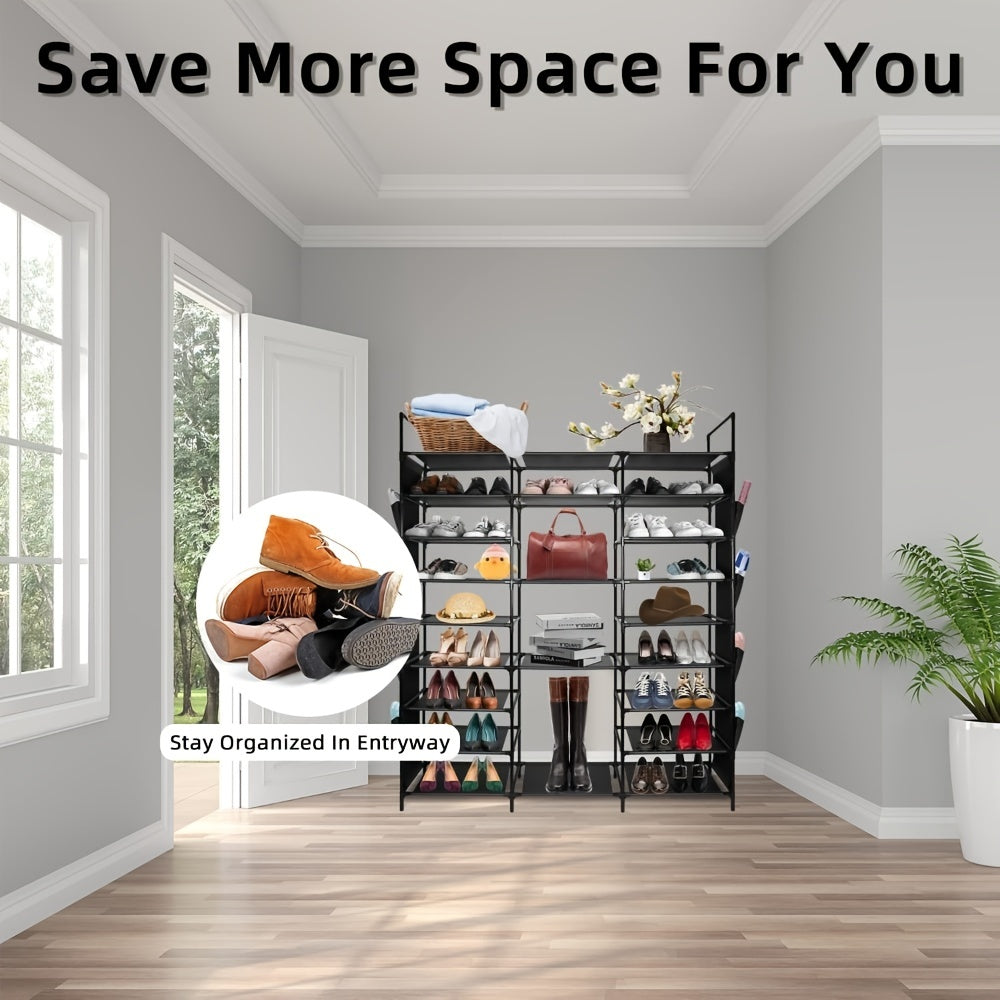 1pc Large Shoe Rack Stackable, Space Saving Shoe Storage Organizer Vertical Non-Woven Tall Shoe Shelf Sturdy High Boots Rack With Side Pockets For Closet, Entryway And Garage