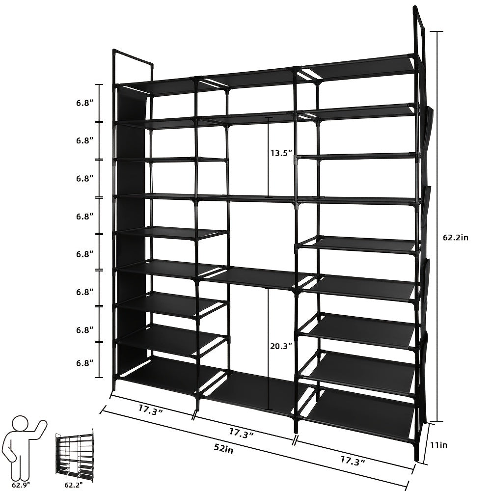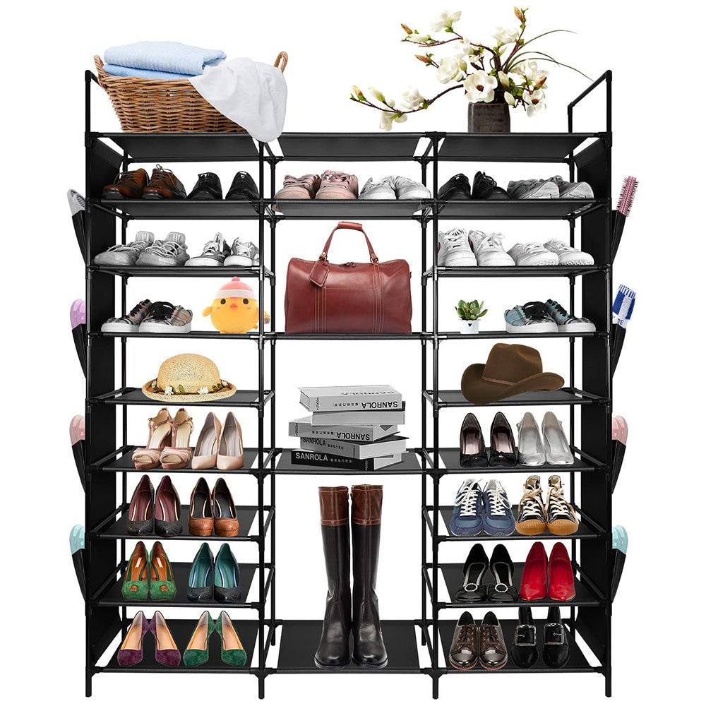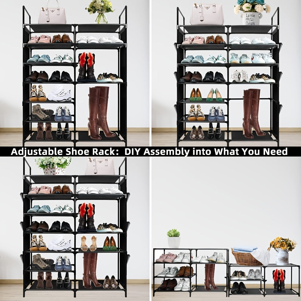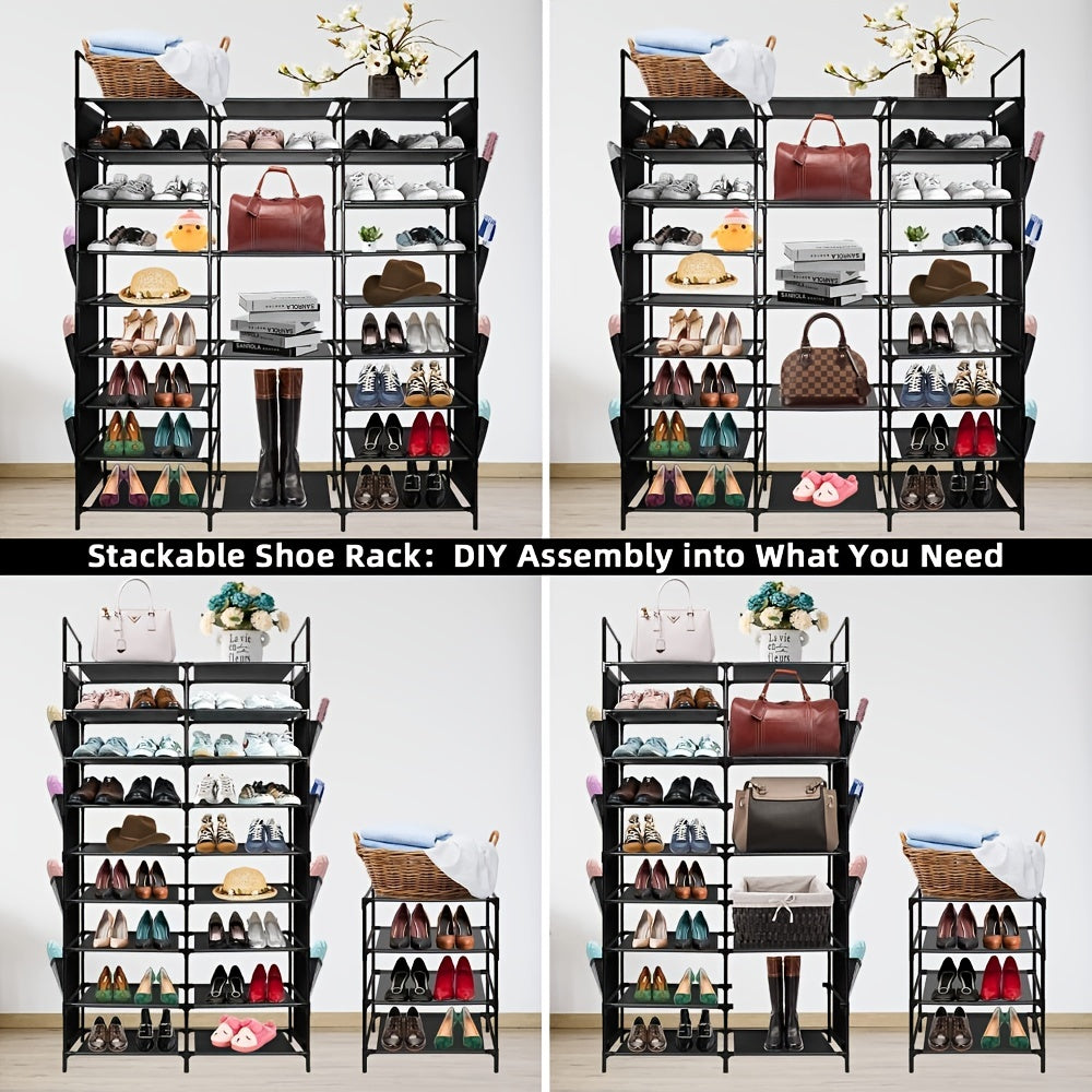 1pc Large Shoe Rack Stackable, Space Saving Shoe Storage Organizer Vertical Non-Woven Tall Shoe Shelf Sturdy High Boots Rack With Side Pockets For Closet, Entryway And Garage