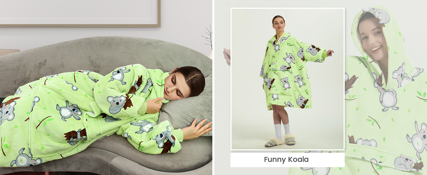 ๐ Pattern: Puppy/Koala/Ice cream/Sushi Warm Tips: We sincerely recommend that you wash this giant blanket separately before using it. Machine washable wearable blanket in cold water, tumble dry on low heat, no ironing or expensive cleaning required!