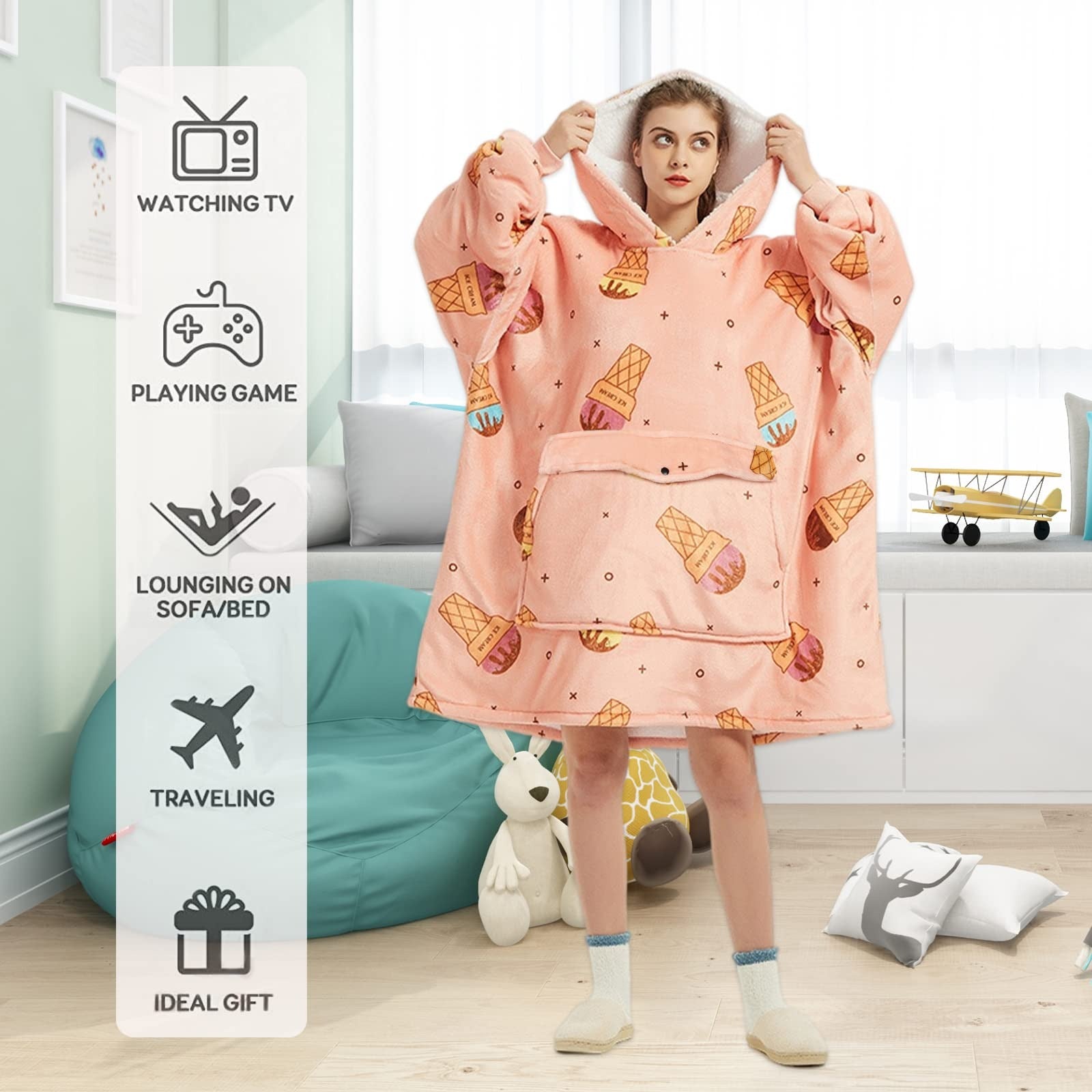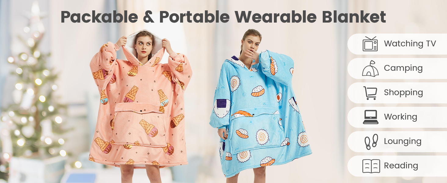 ๐ The pullover blanket hoodie is very lightweight and easy to carry and store. You can fold it up and easily put it in your suitcase to take with you on camping and travel. When you are resting in the car or on the plane, wearing the oversized microfiber blanket hooded can make you feel the warmth and comfort of home.