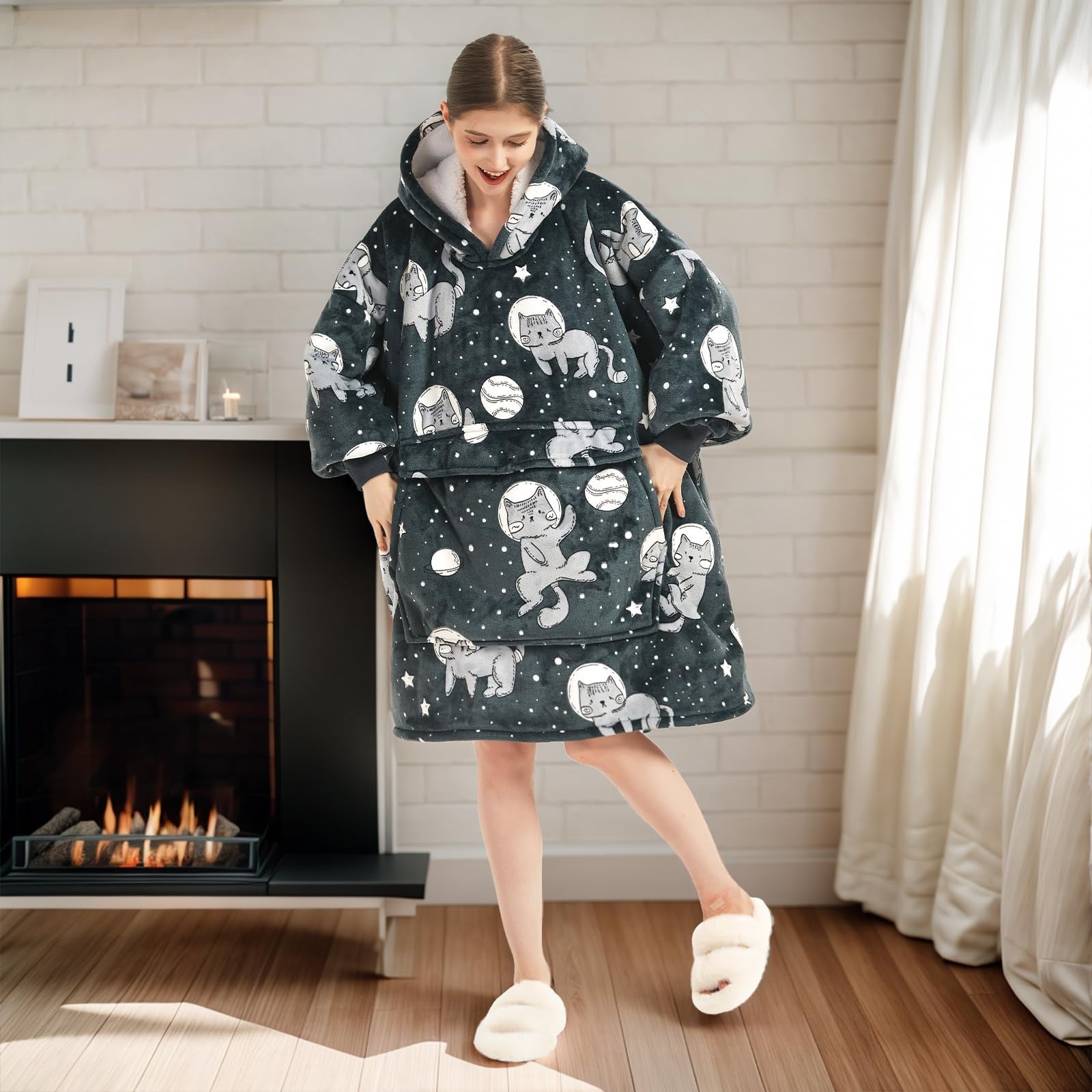 ๐Hooded blanket sweatshirt are made of the softest materials to give you the most comfortable temperature in winter. The blanket hoodie has a huge pocket that makes it easy to store your phone, remote control, magazines and other items so your hands never freeze. Whether you're indoors or out, you'll feel the soft touch and cozy temperature.
