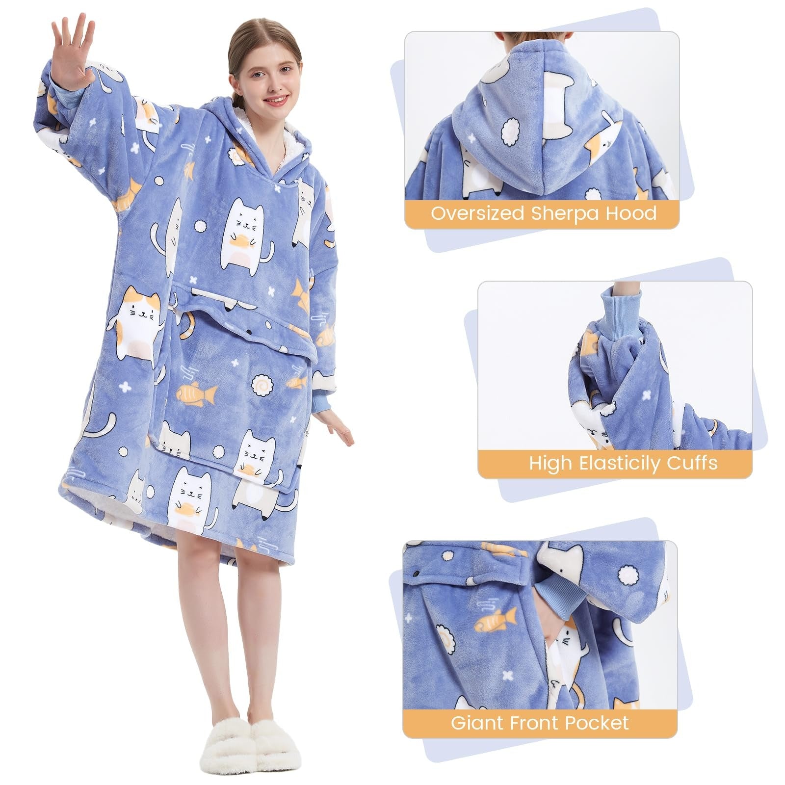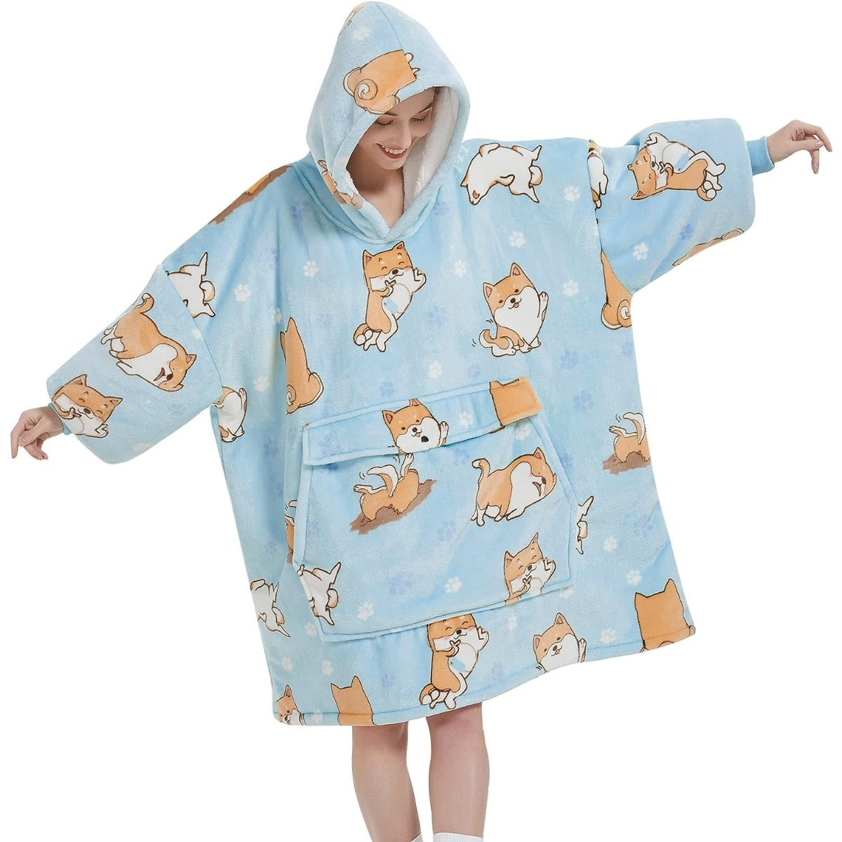 ๐ Sherpa blanket sweatshirts are also very easy to clean, you just put them in the washing machine without any special treatment and cleaning them is a breeze. The hooded blanket is a versatile garment for year-round use.