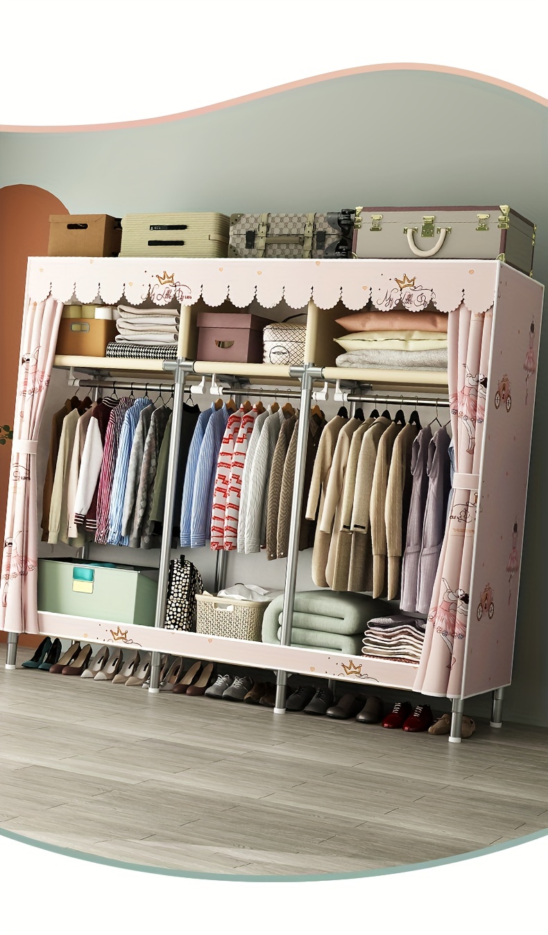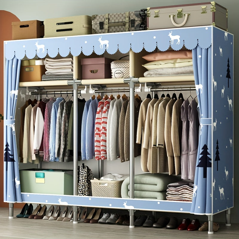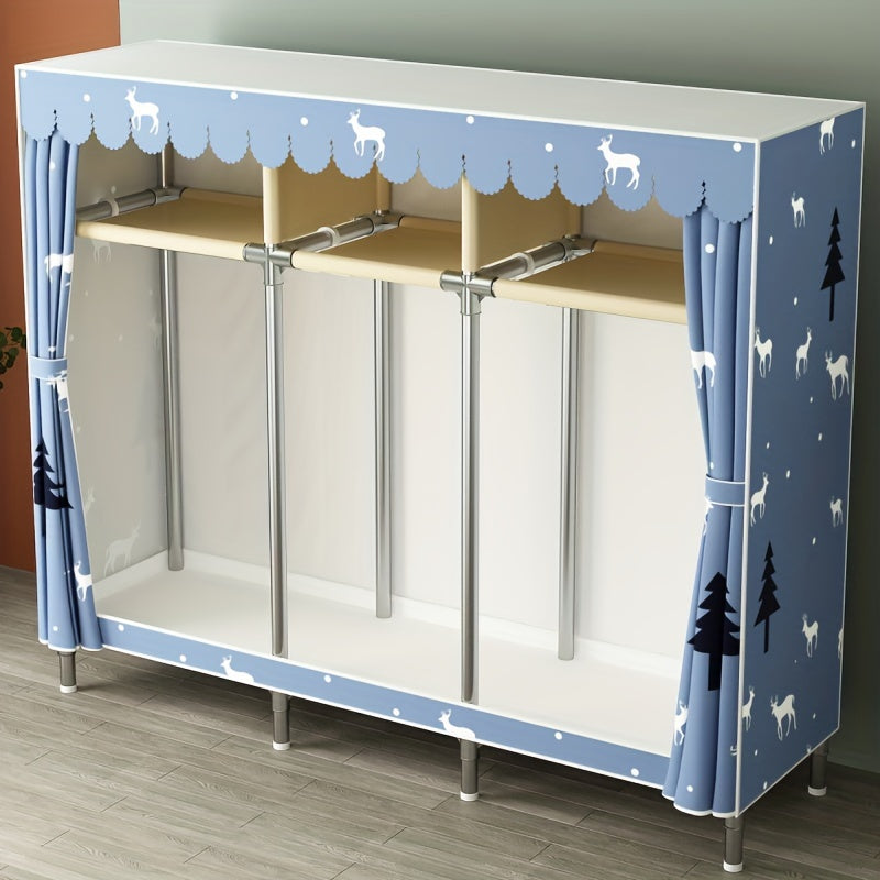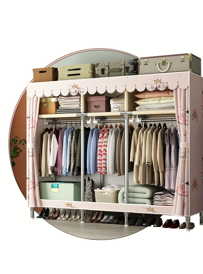 1pc Printing Storage Cabinet, Simple Wardrobe, Household Fabric Closet, Practical All Steel Rack Wardrobe, Simple Assembly Wardrobe, Household Bedroom Organization And Storage Supplies, Home Furnishing