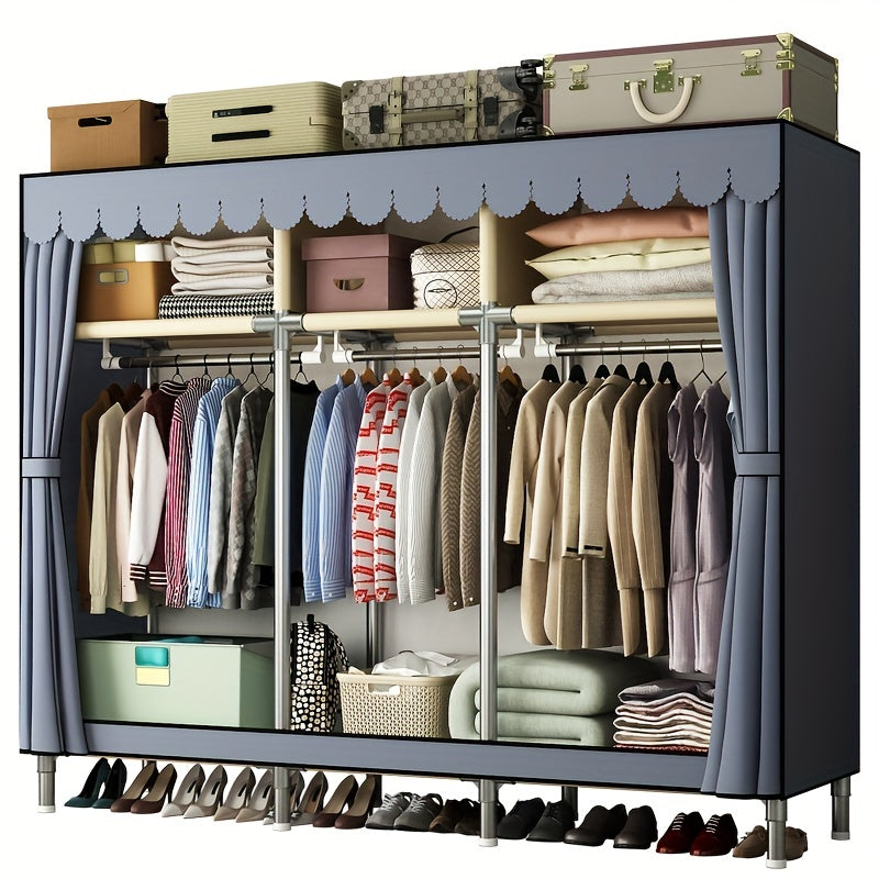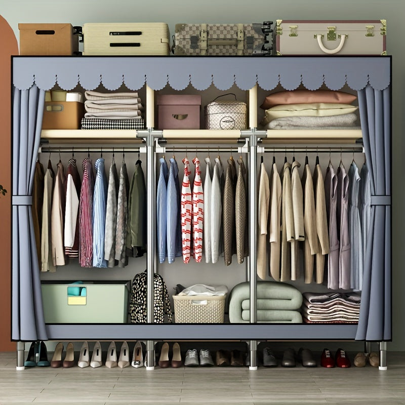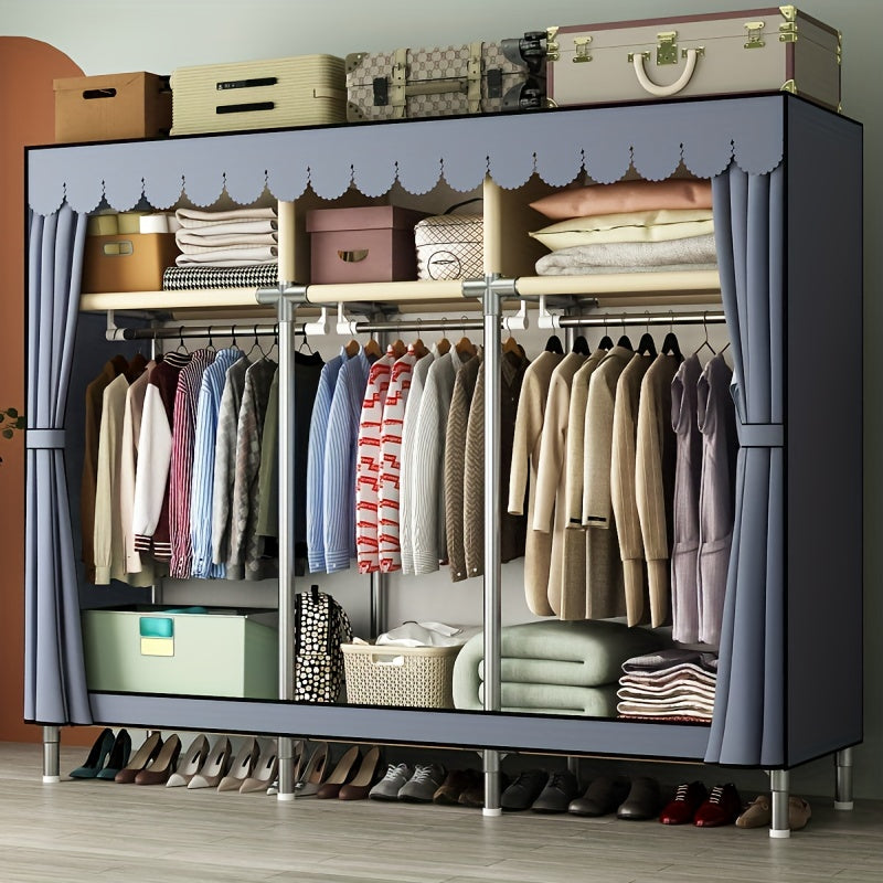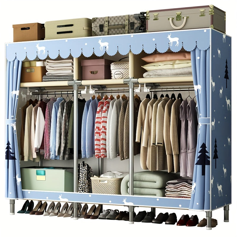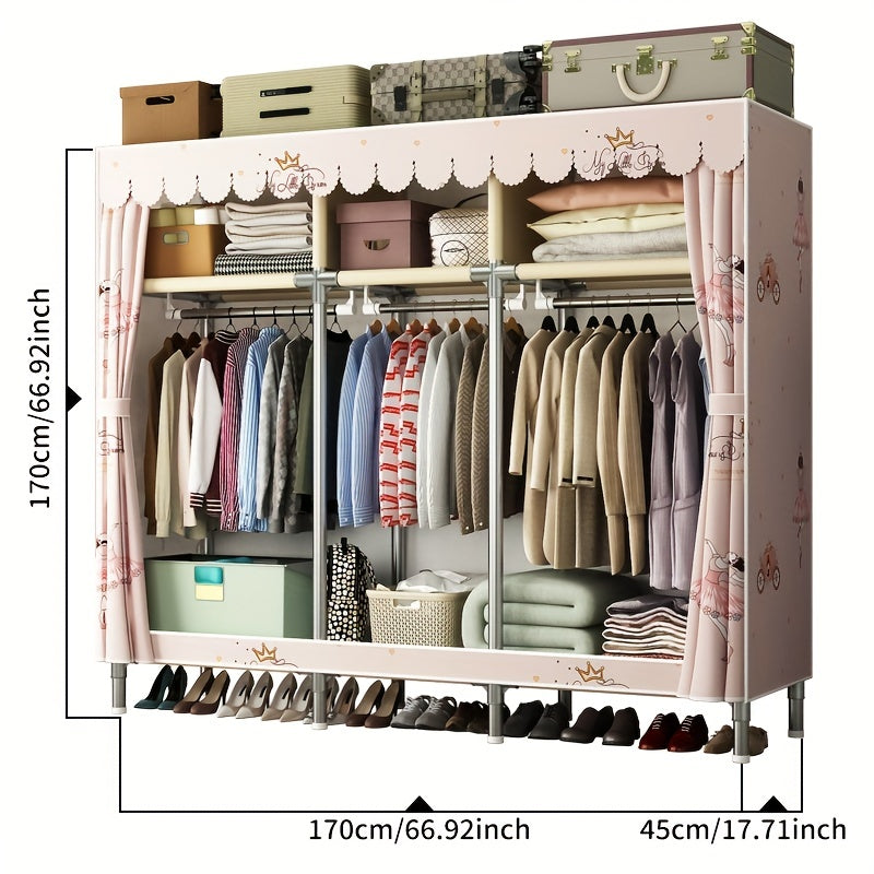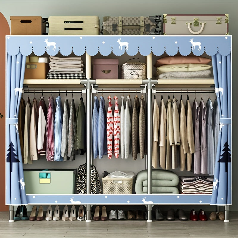 1pc Printing Storage Cabinet, Simple Wardrobe, Household Fabric Closet, Practical All Steel Rack Wardrobe, Simple Assembly Wardrobe, Household Bedroom Organization And Storage Supplies, Home Furnishing