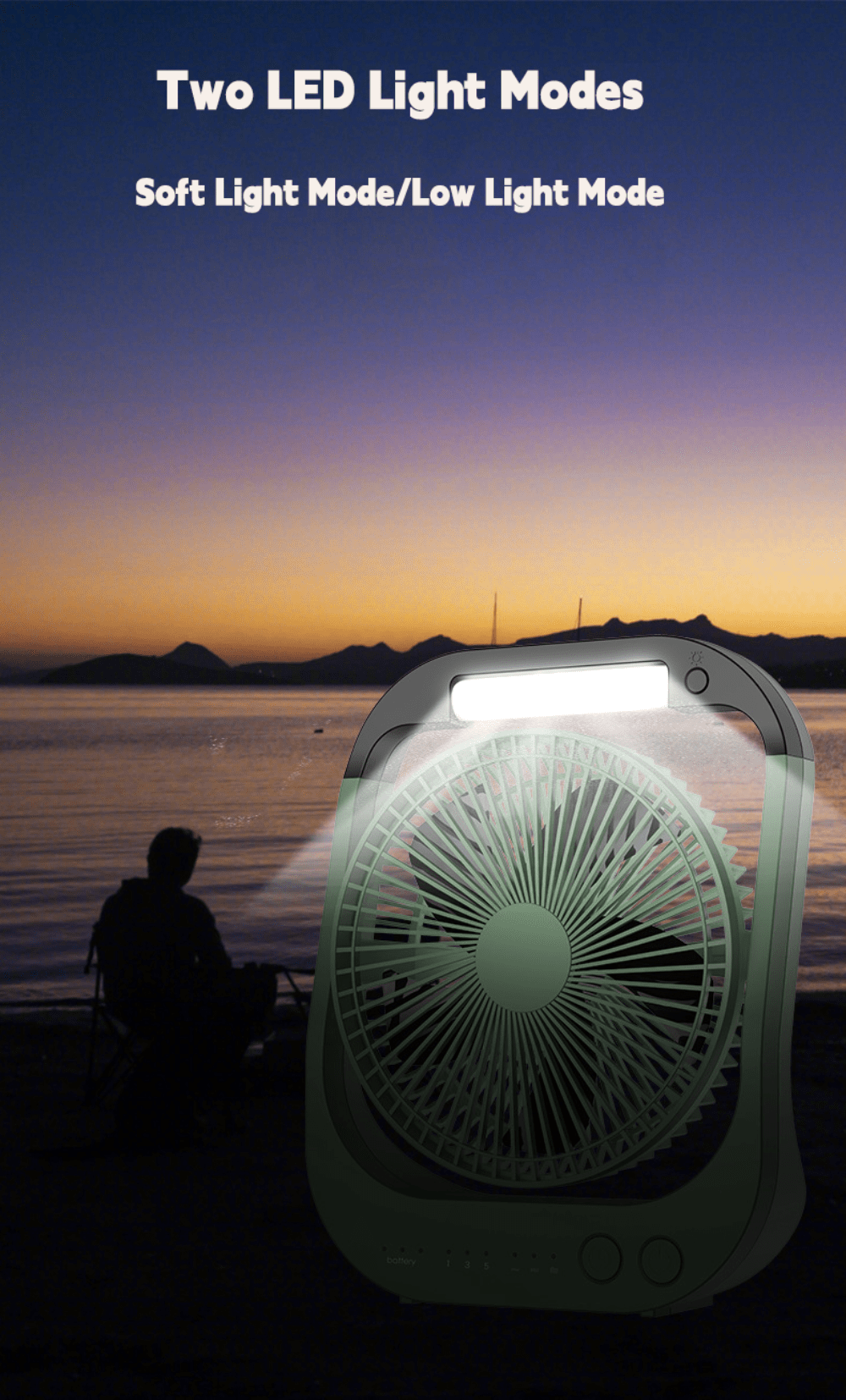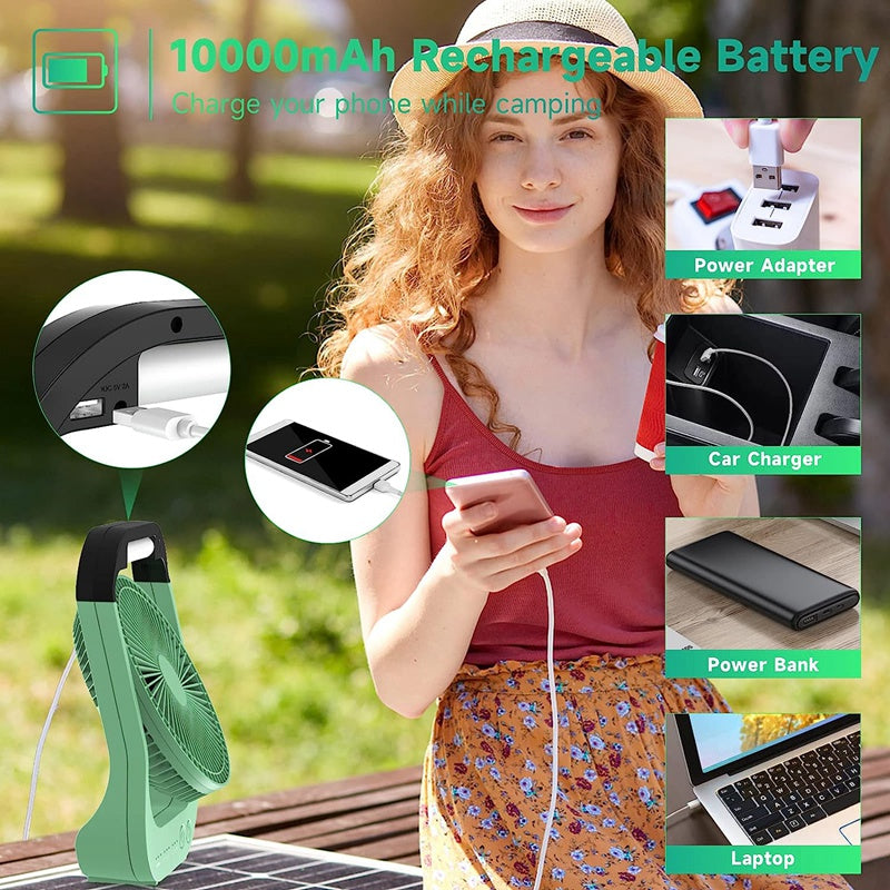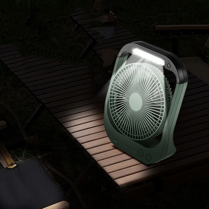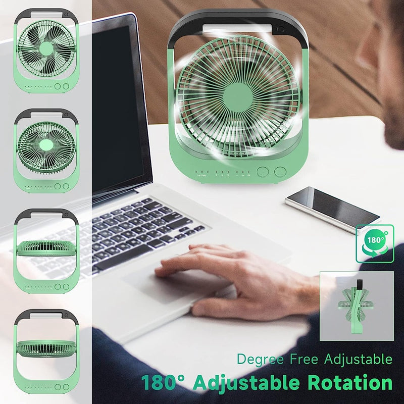 1pc Rechargeable USB Desk Fan with 10000mAh Battery, 180° Rotation, LED Light, Timer, and Portable Design for Camping and Traveling